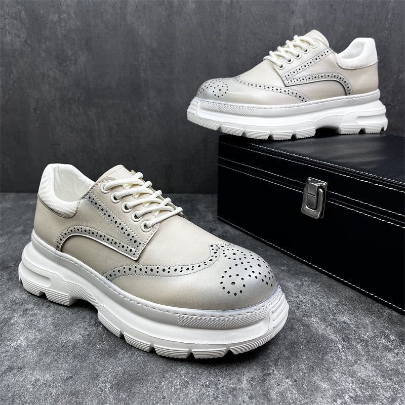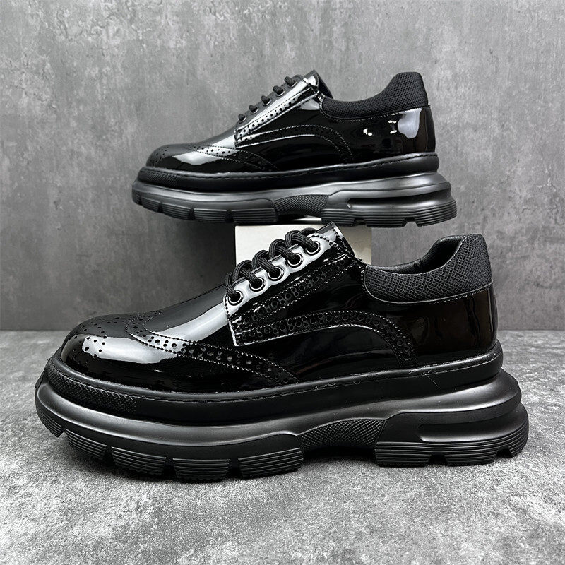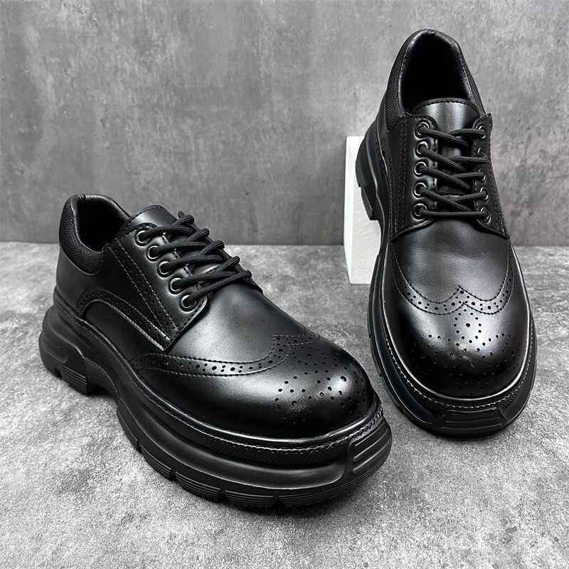 松糕底乐福鞋男秋季新款2025大头皮鞋商务布洛克雕花英伦休闲男鞋