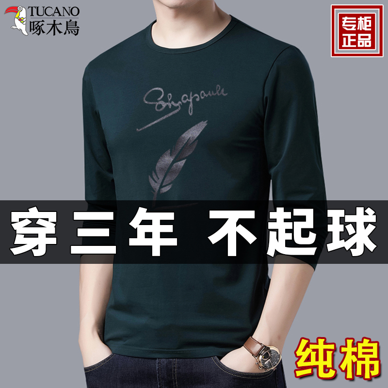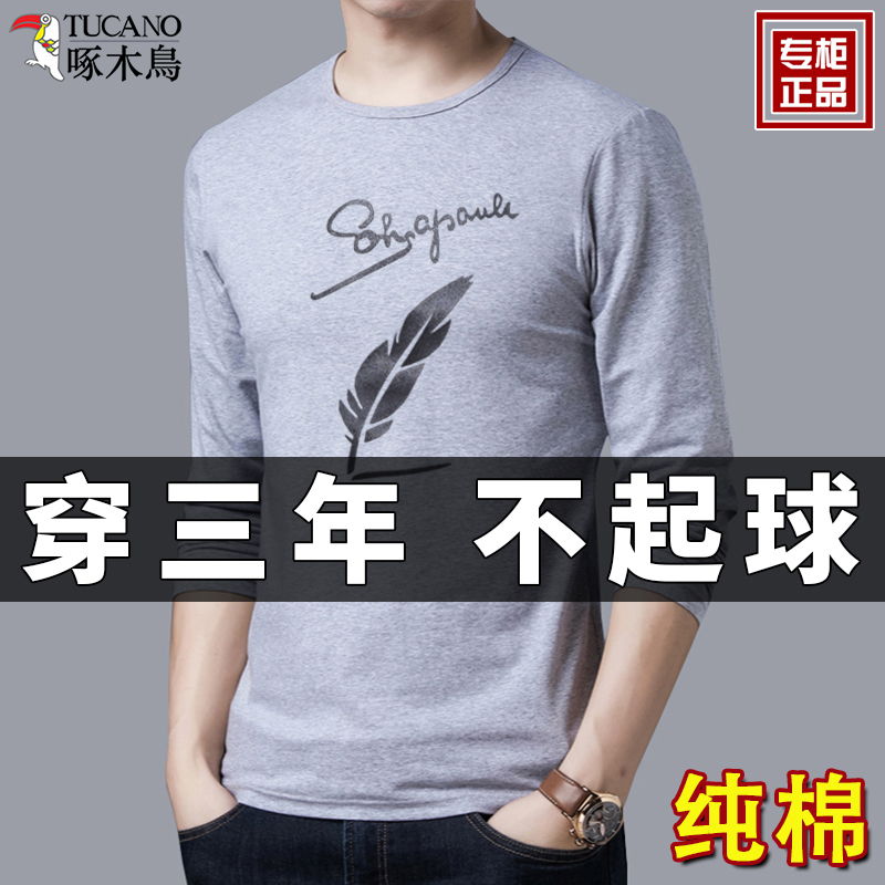 啄木鸟长袖t恤男纯棉圆领春秋季潮流宽松打底衫内搭秋衣上衣体恤