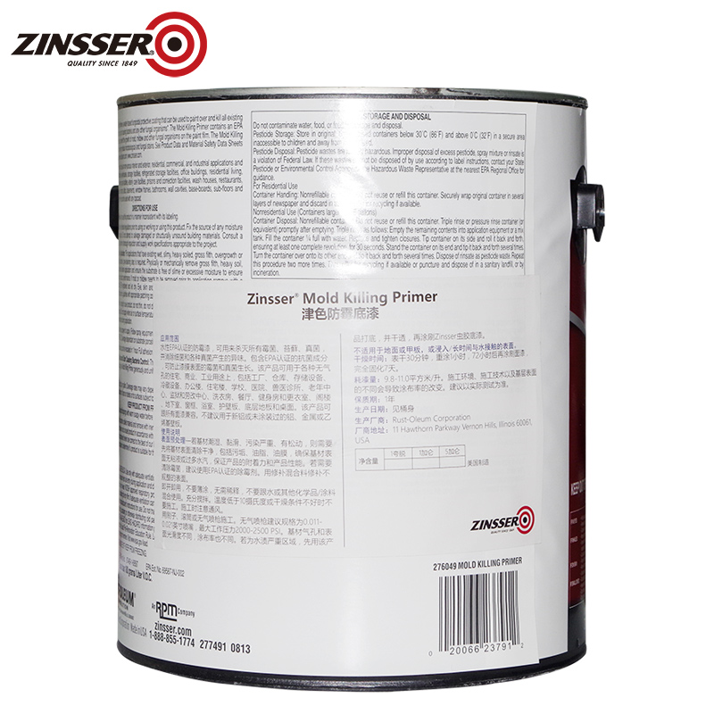 美国原装进口ZINSSER专业防霉底漆墙面翻新环保乳胶漆