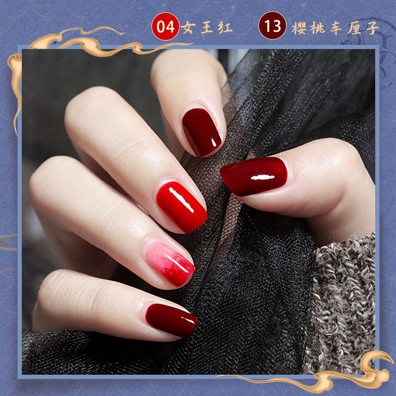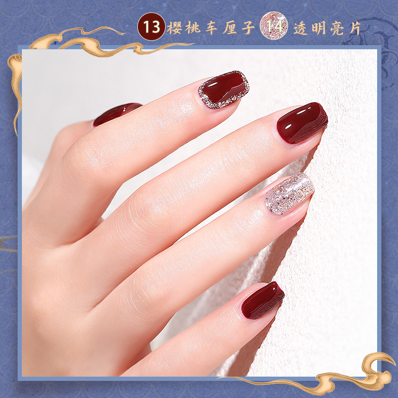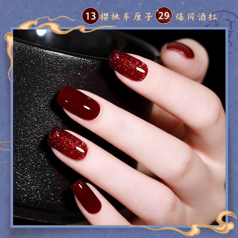 樱桃车厘子酒红色美甲油免烤不可剥指甲油持久快干不掉色显白套装