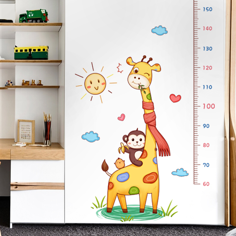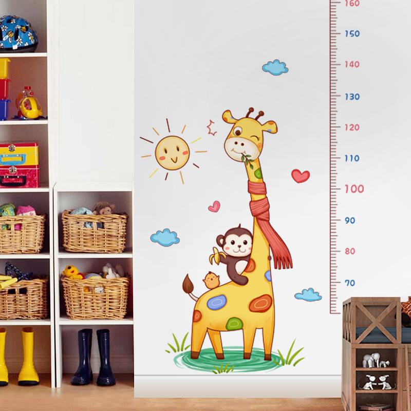儿童房身高贴纸卡通装饰身高尺宝宝房量身M高墙贴纸动物可移除贴