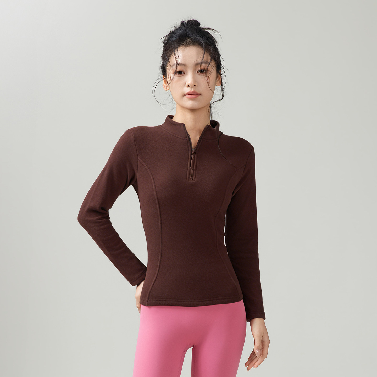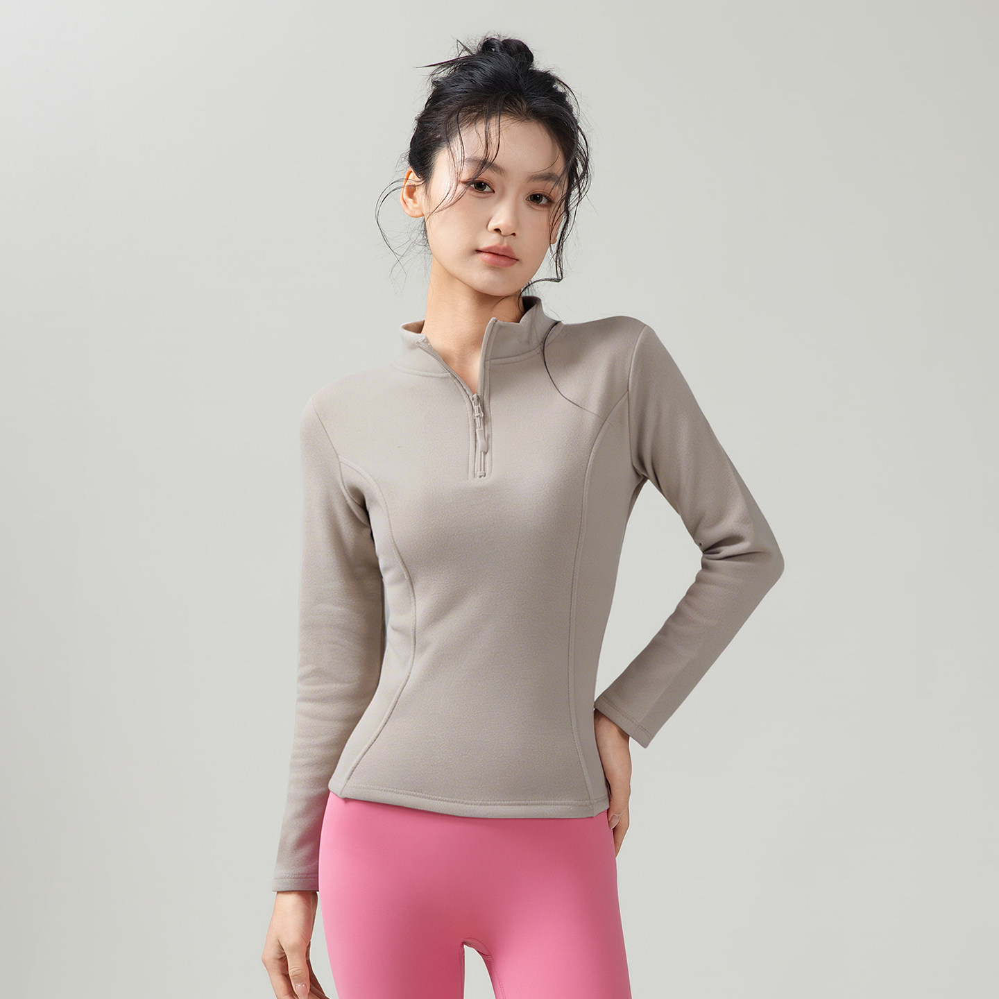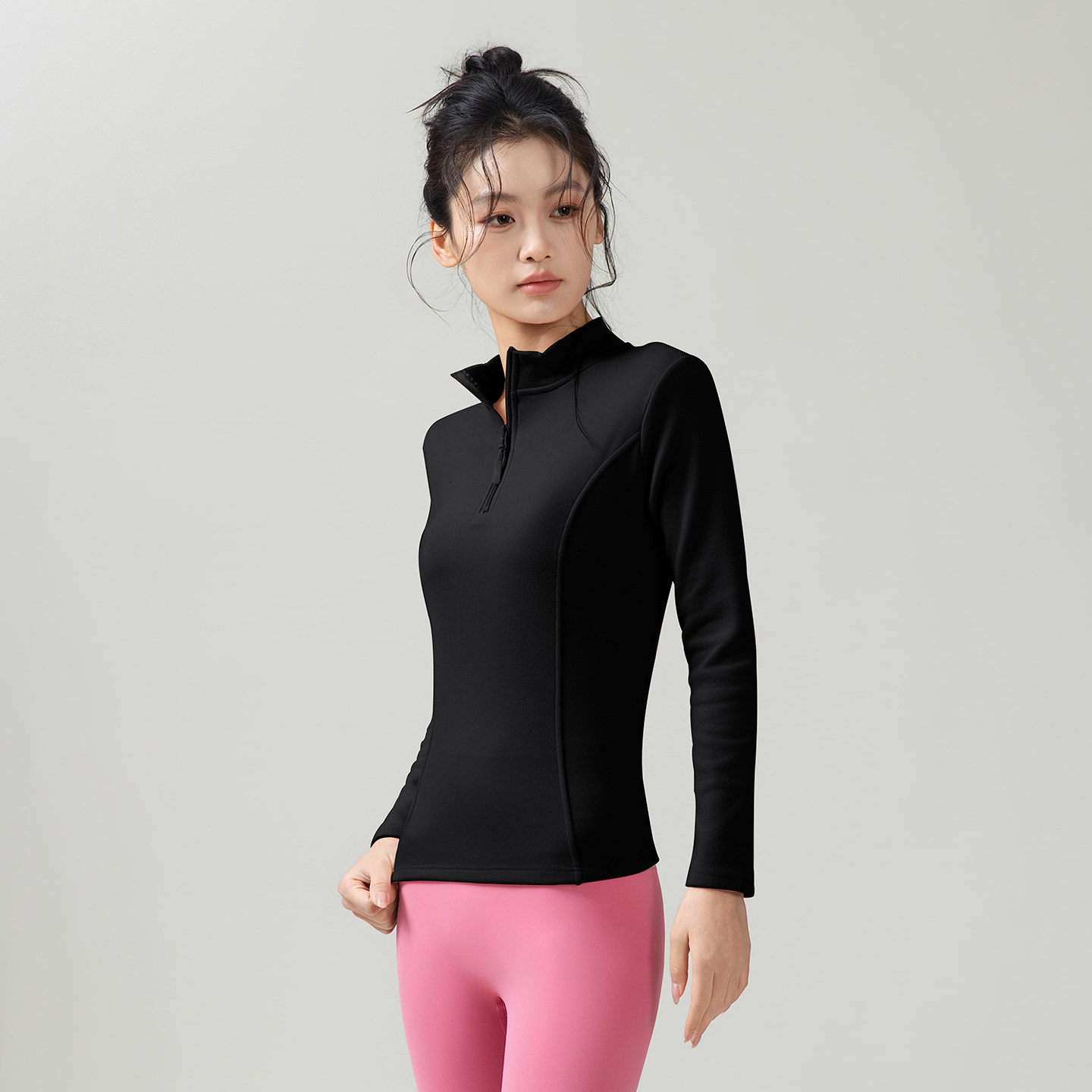 气质高级半拉运动健身服女春秋长袖骑行跑步上衣瑜伽普拉提训练服