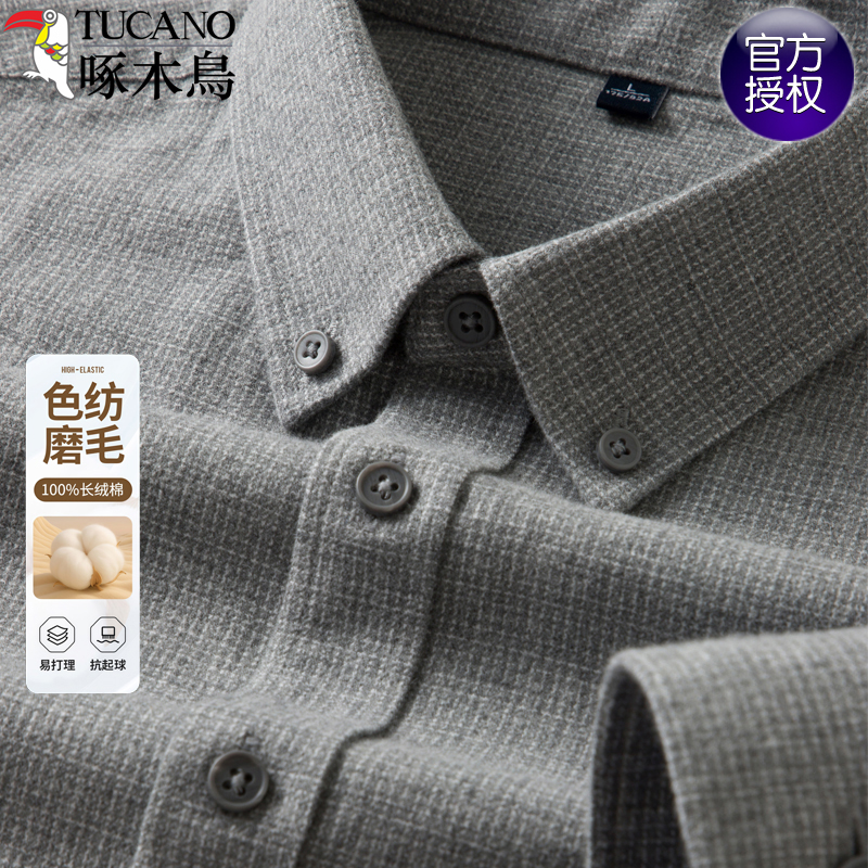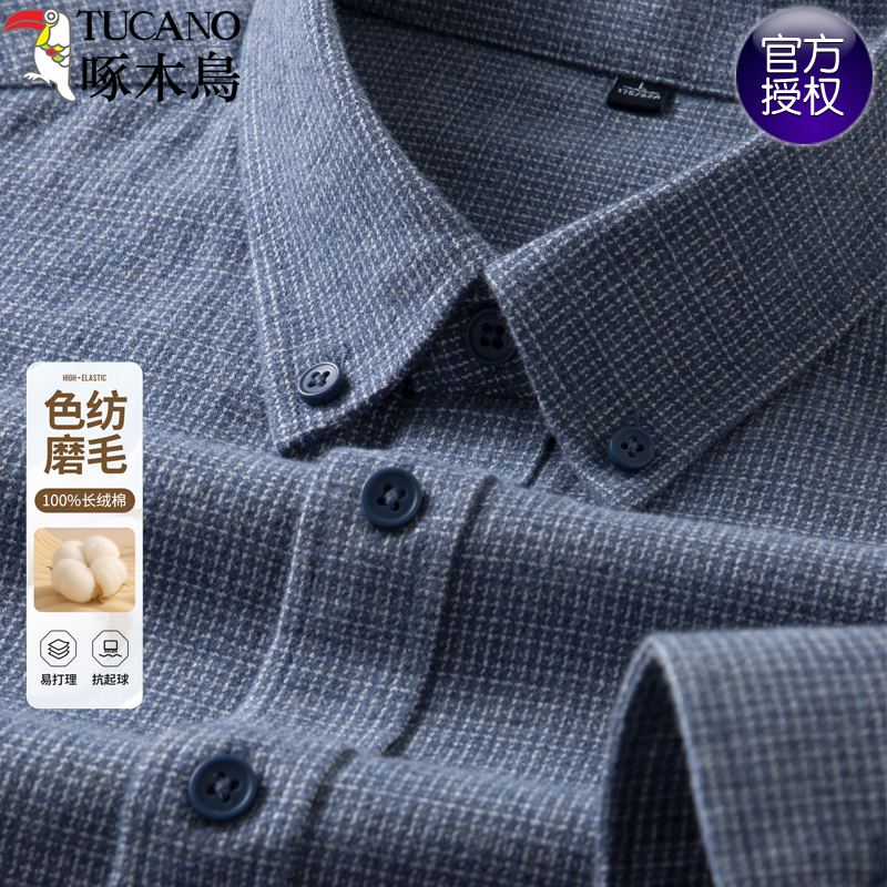 啄木鸟纯棉磨毛衬衫男士格子衬衣