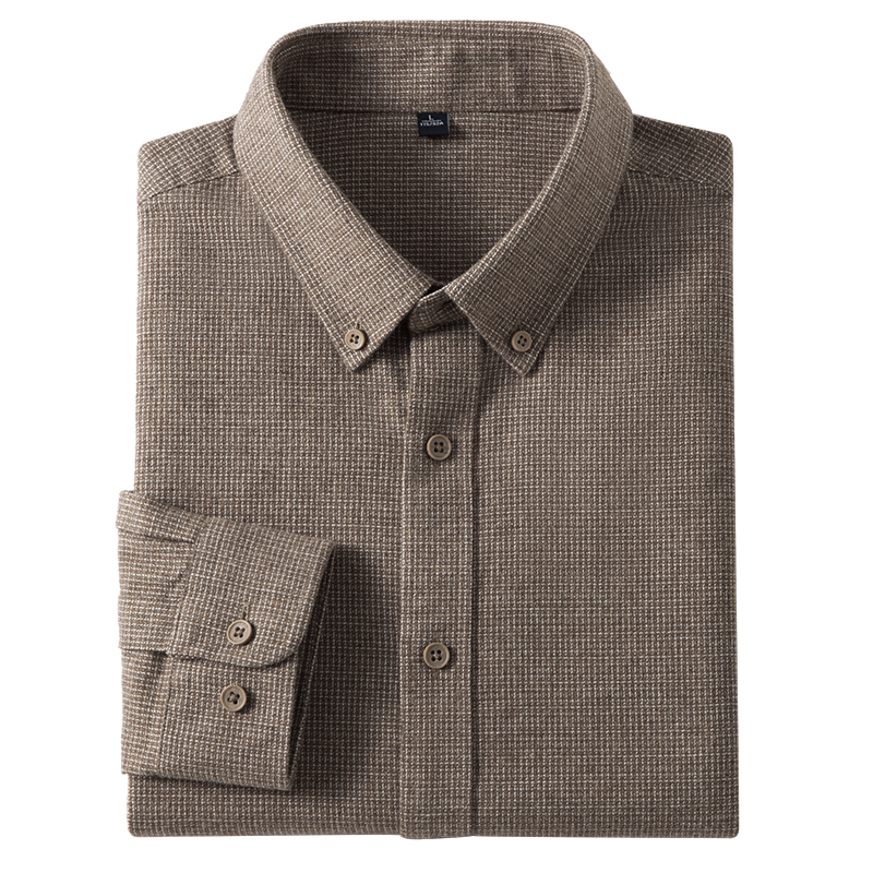 啄木鸟2025秋季新款纯棉磨毛衬衫男士商务休闲中年长袖格子衬衣男