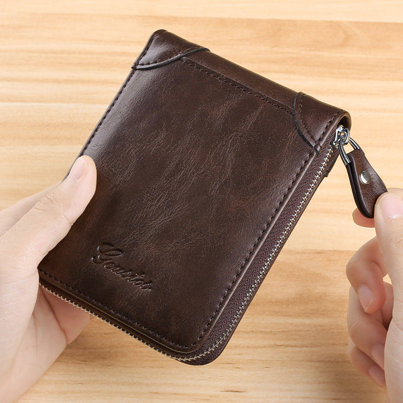 新款真软皮高档男士钱包男短款钱夹男女钱包卡包拉链驾驶证套钱包