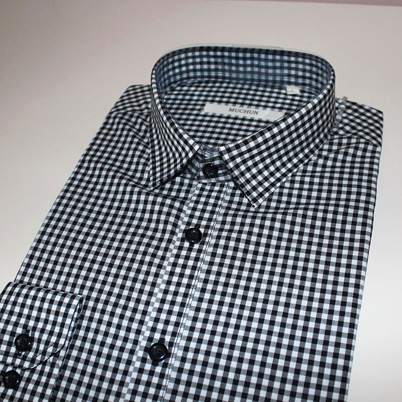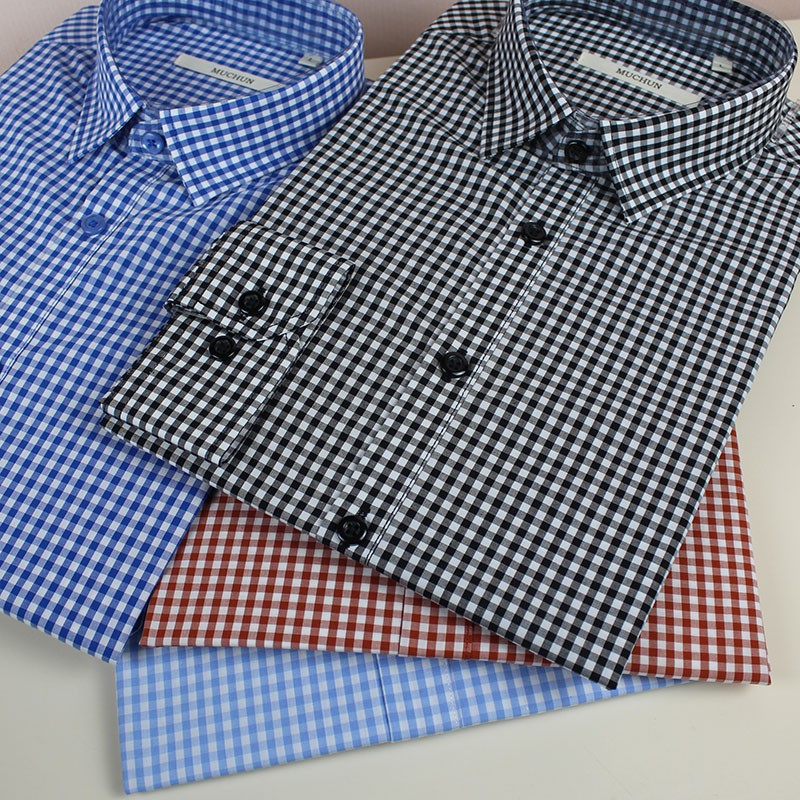 小格子衬衫男长袖红色蓝色黑白衬衣男生纯棉全男士装细休闲清新款