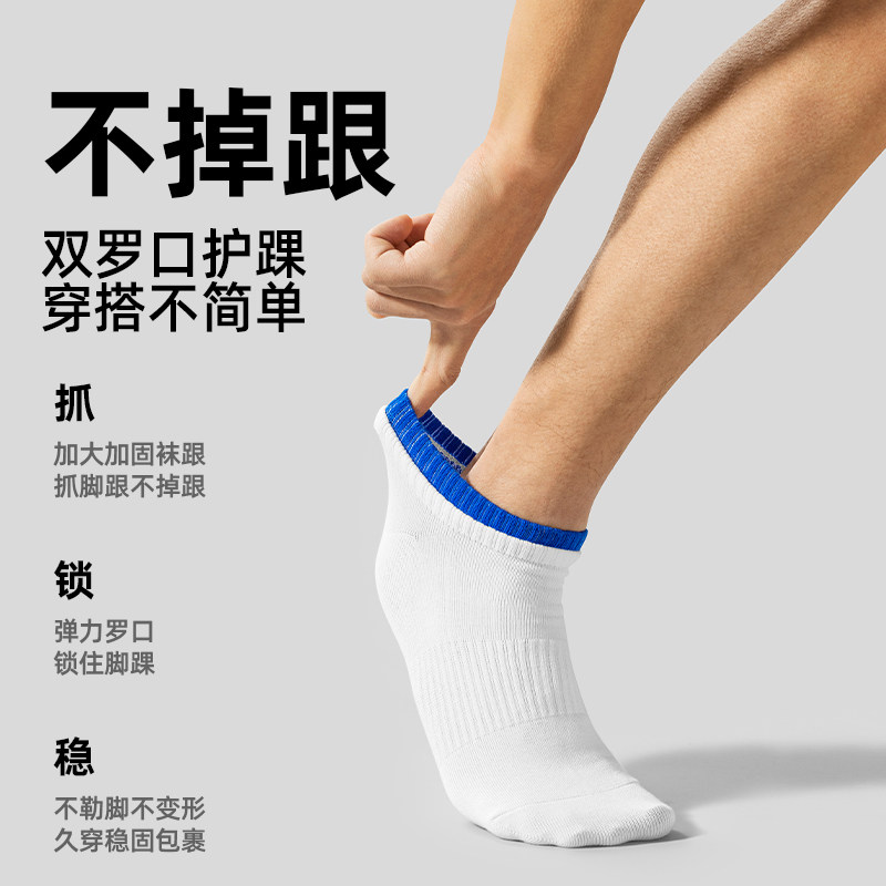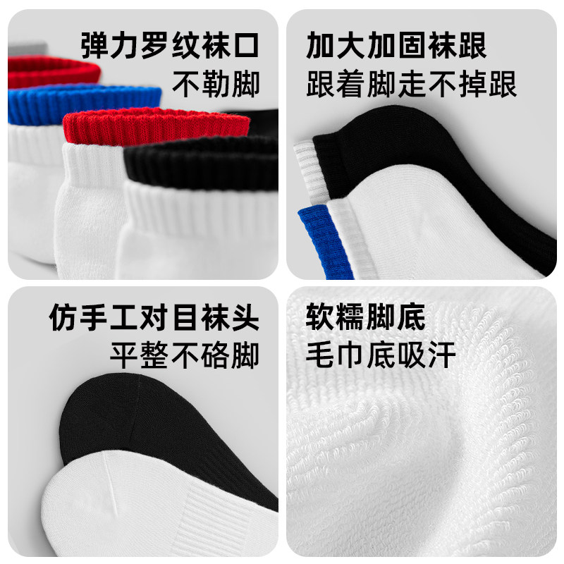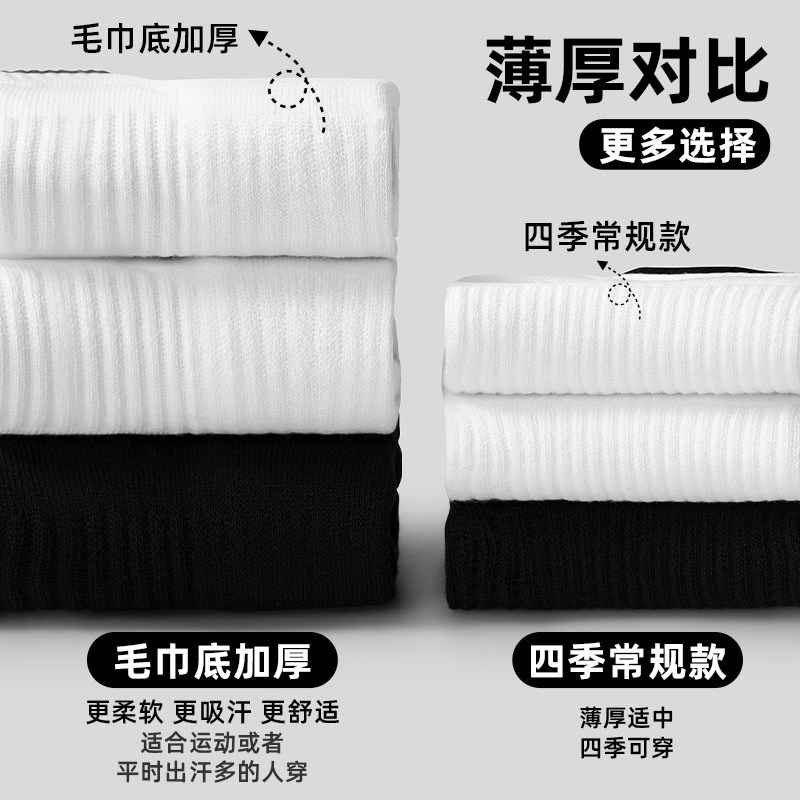 子墨袜子男士短袜纯棉薄款秋冬篮球运动毛巾底吸汗透气短筒袜白色