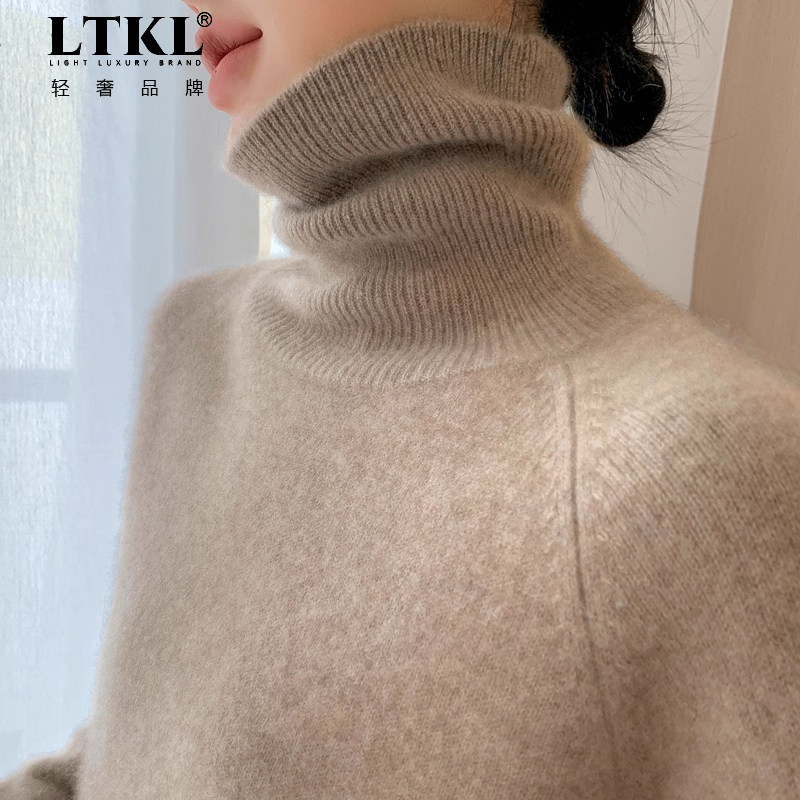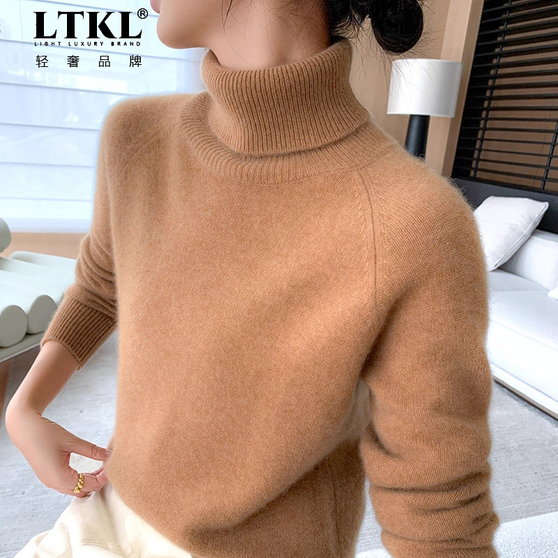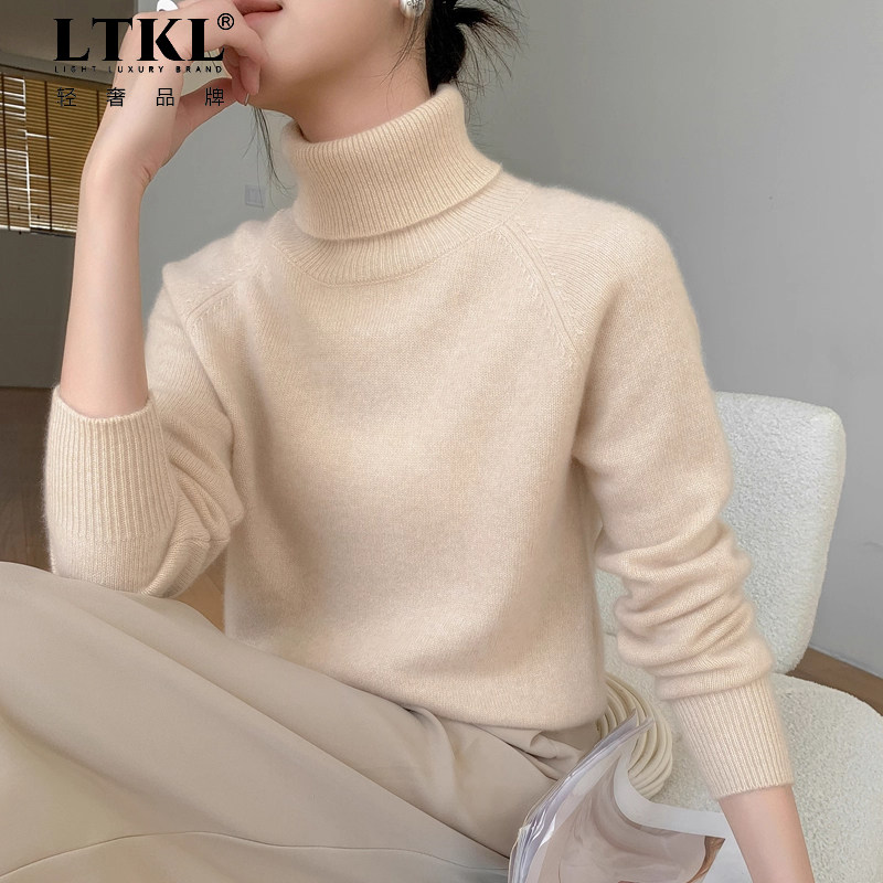 鄂尔多斯市100纯山羊绒衫女毛衣高领翻领秋冬内搭针织打底加厚款
