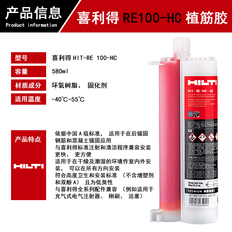 喜利得植筋胶RE10/RE100德国原装进口混凝土钢筋锚固胶植筋加固胶