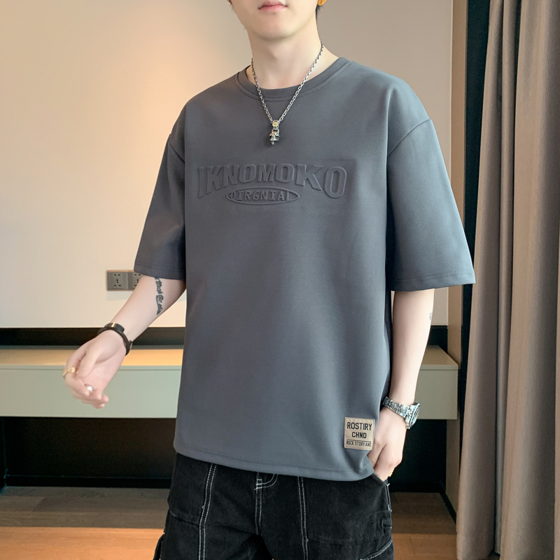 男士t恤短袖夏季薄款圆领潮牌宽松加肥加大码钢印半袖胖子男装潮