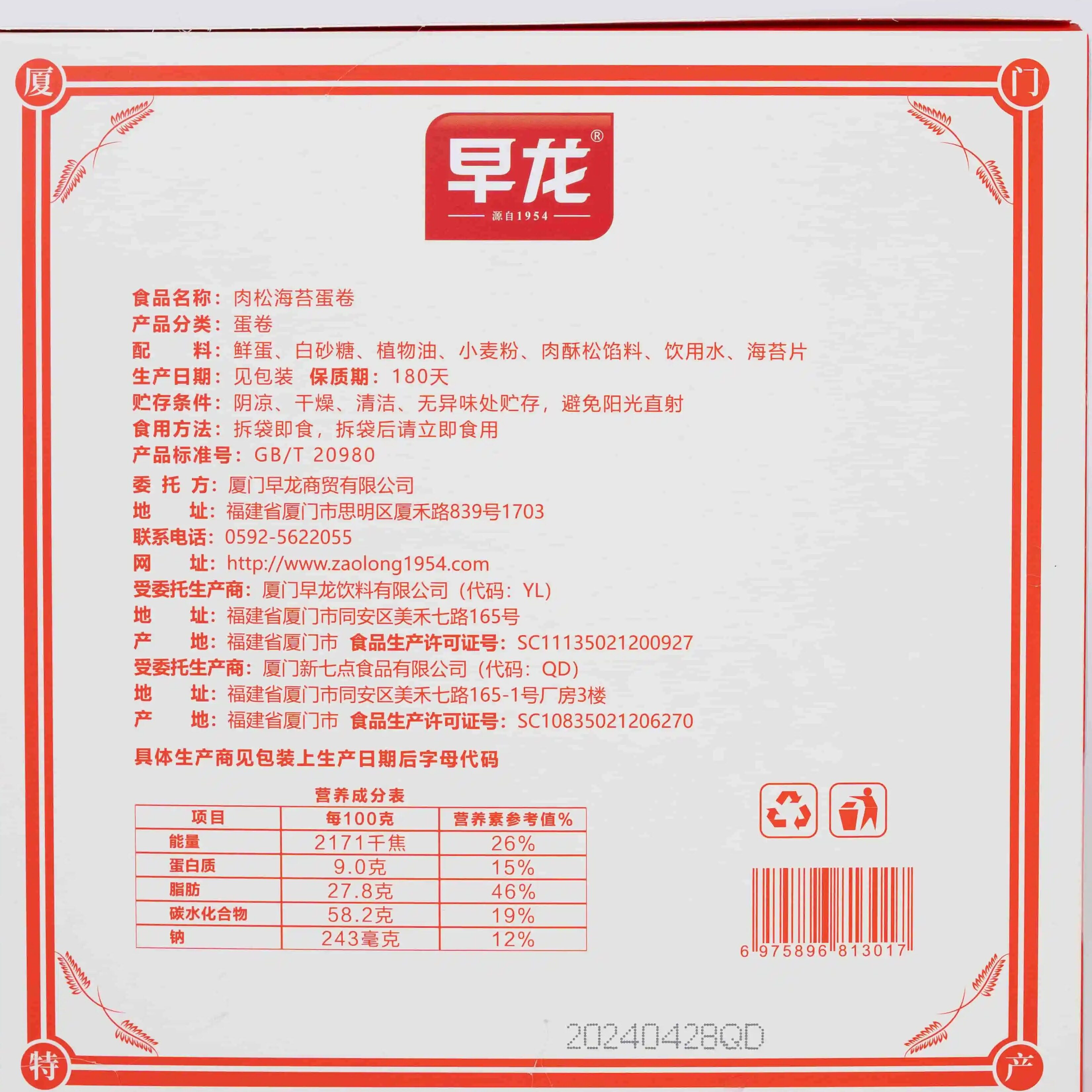 传鹭厦门厦门老字号特产早龙海苔肉松鸡蛋卷5盒饼干茶点心零食品