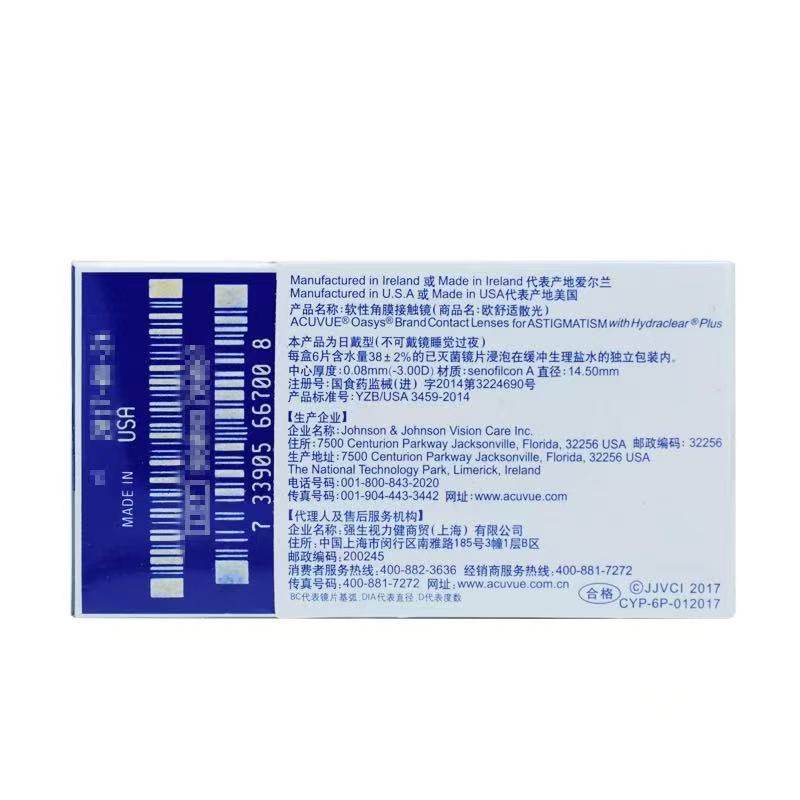 强生双周抛欧舒适安视优散光定制隐形眼镜半月抛6片正品原装保证D