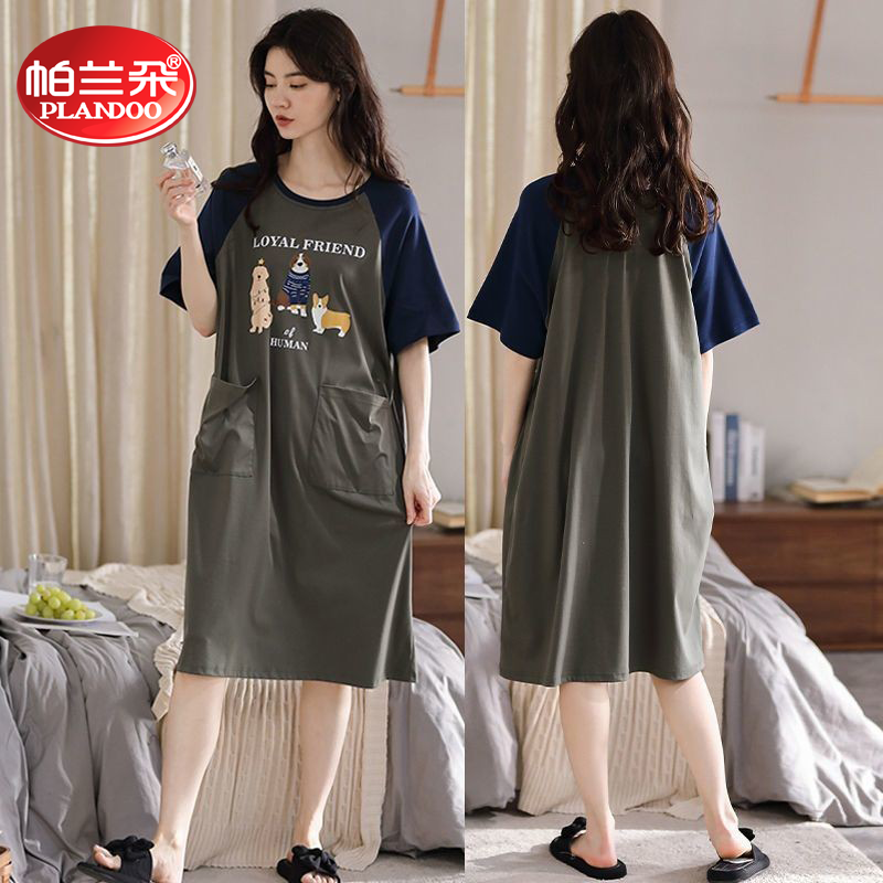 帕兰朵短袖睡裙女夏季纯棉宽松韩版夏天睡衣加肥加大码孕妇200斤