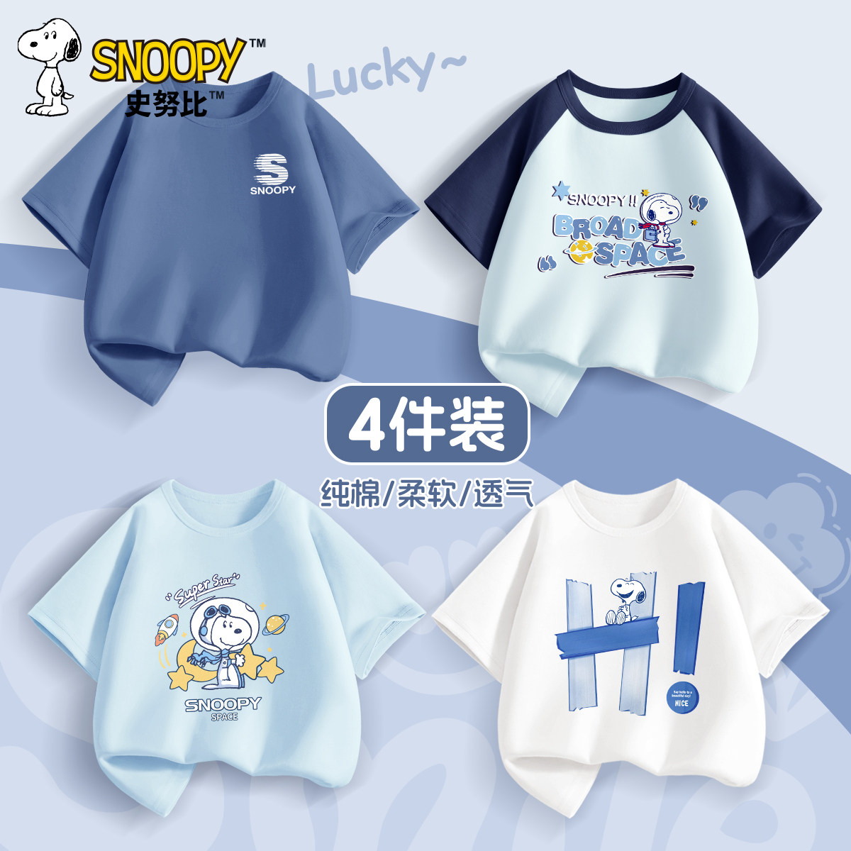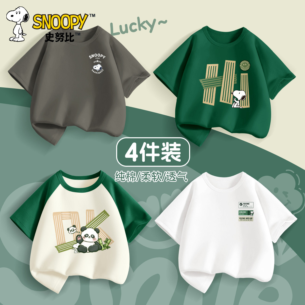 史努比男童短袖t恤2026新款纯棉夏季中大童半袖儿童夏装男孩上衣