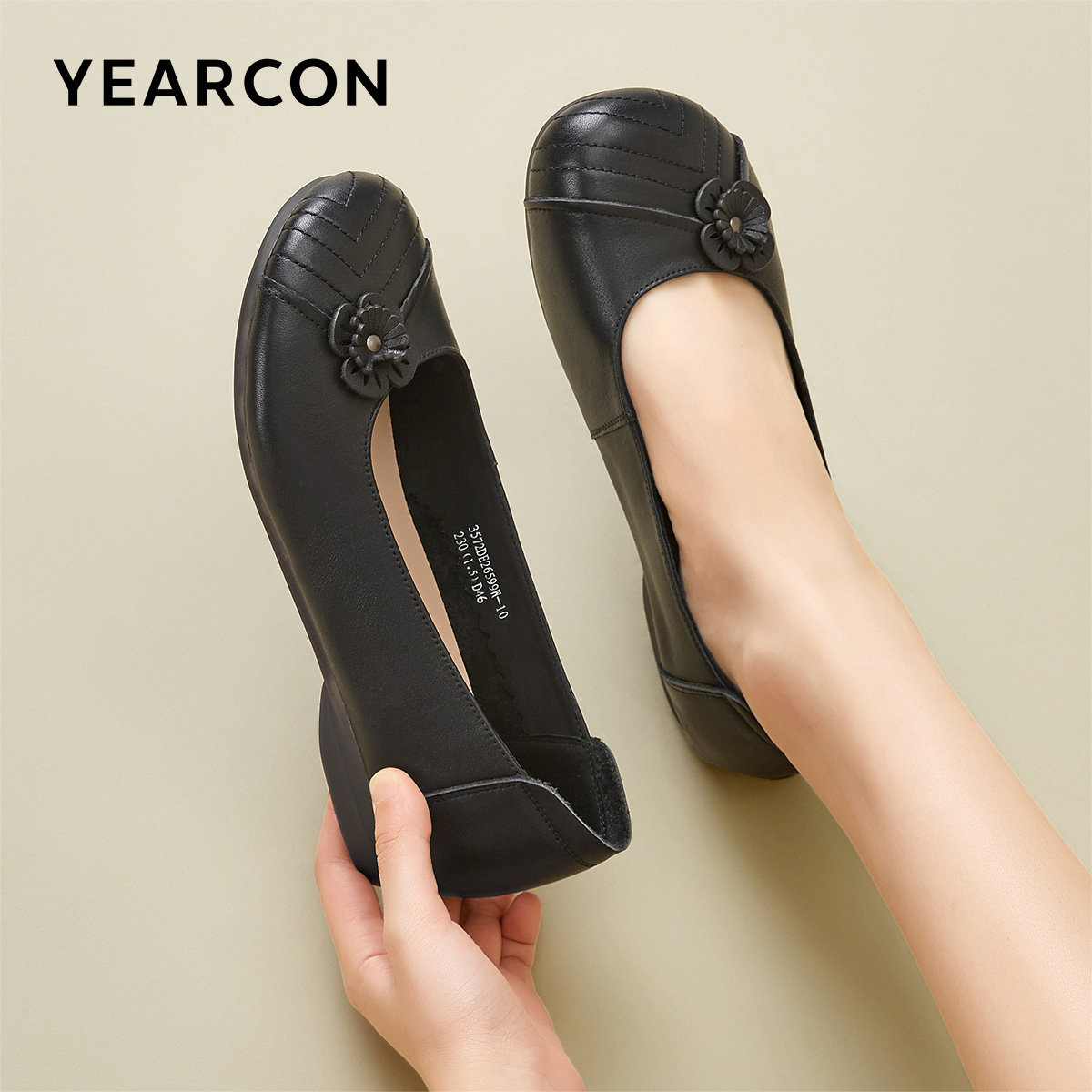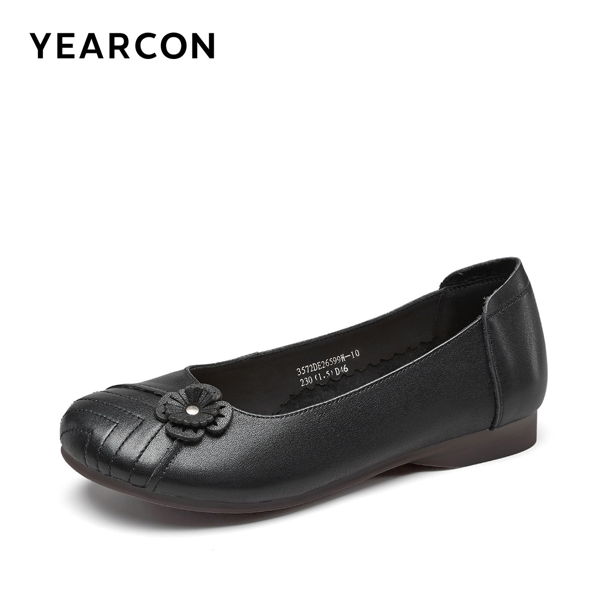 意尔康妈妈鞋春夏季真皮低跟平底舒适不累脚浅口单鞋中老年女鞋