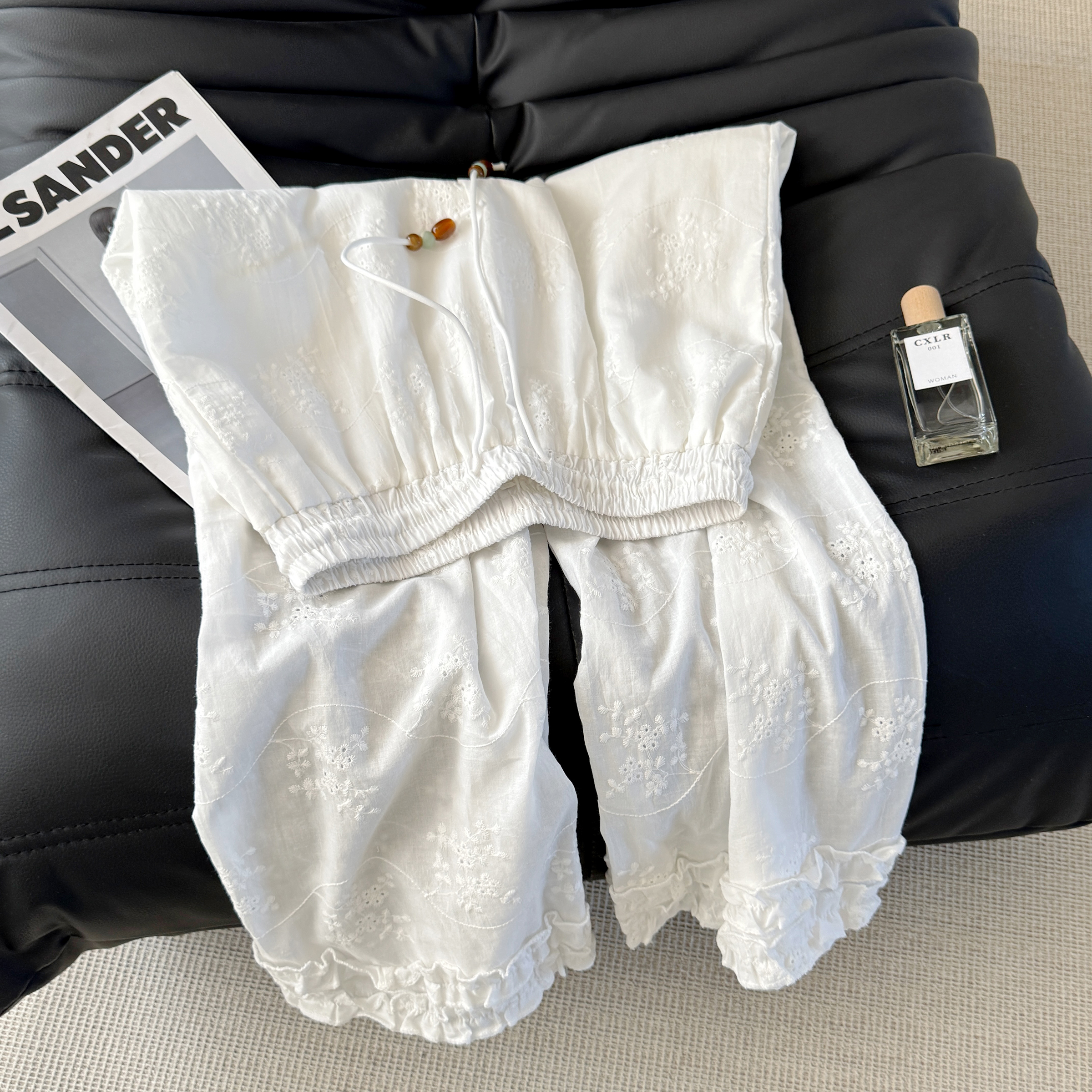 白色镂空花边刺绣阔腿裤女夏季慵懒风垂感抽绳休闲薄款防晒长裤潮