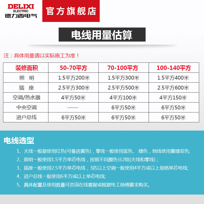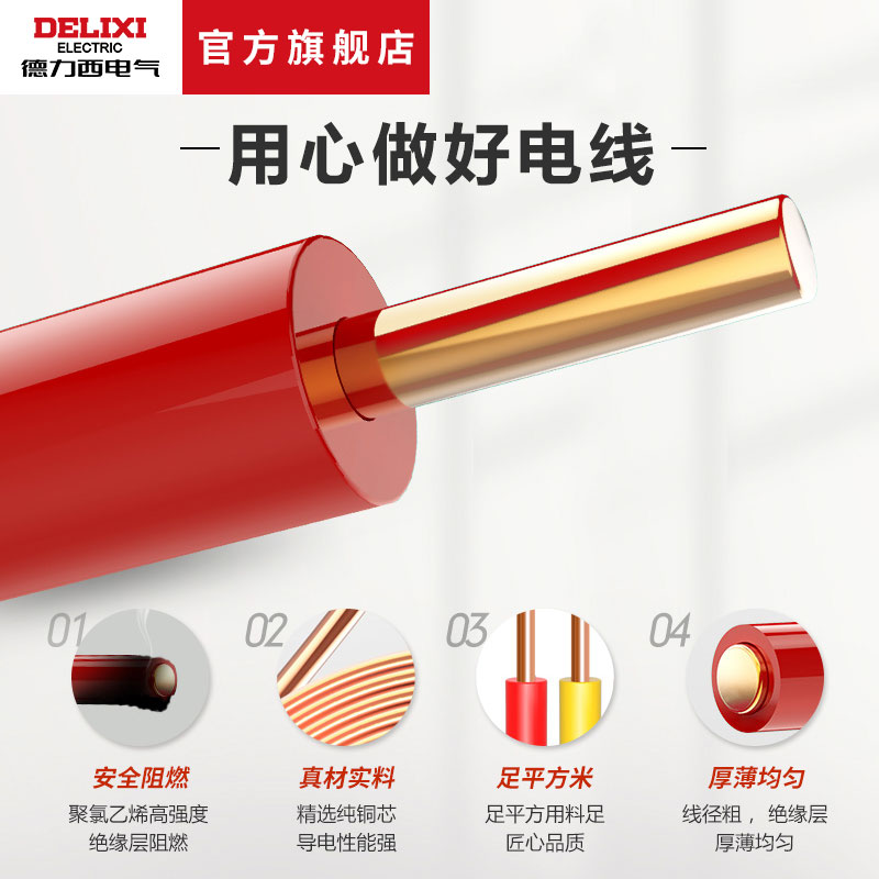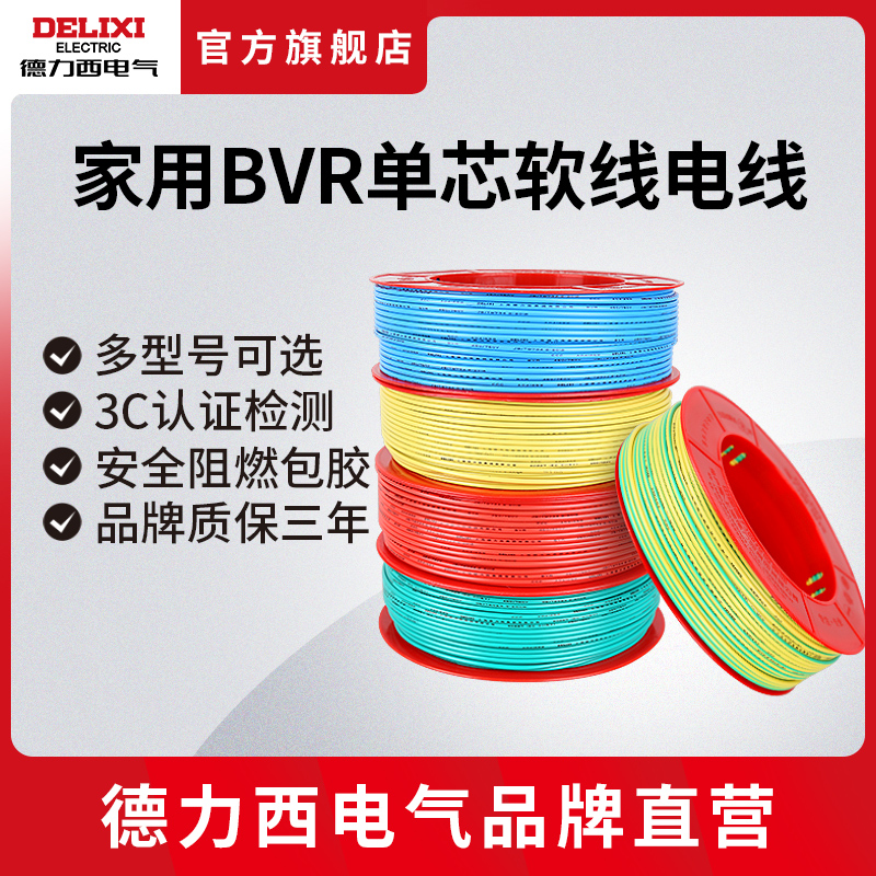 德力西电气电线1.5/2.5/4/6平方 家装BVR多芯100米软线铜芯线电线