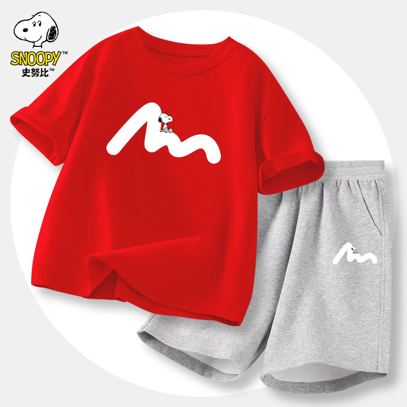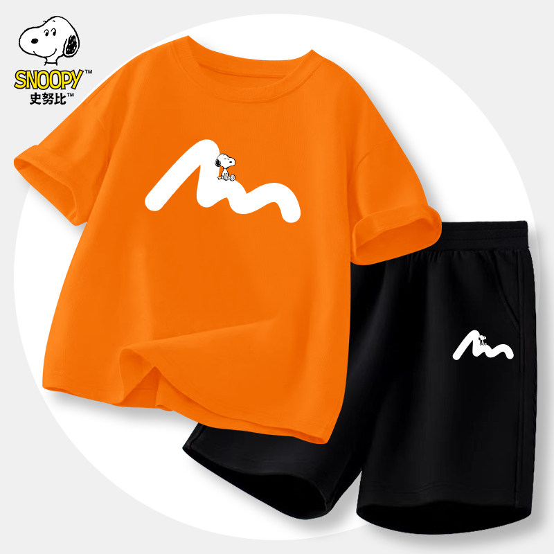 史努比男童短袖t恤套装2025新款