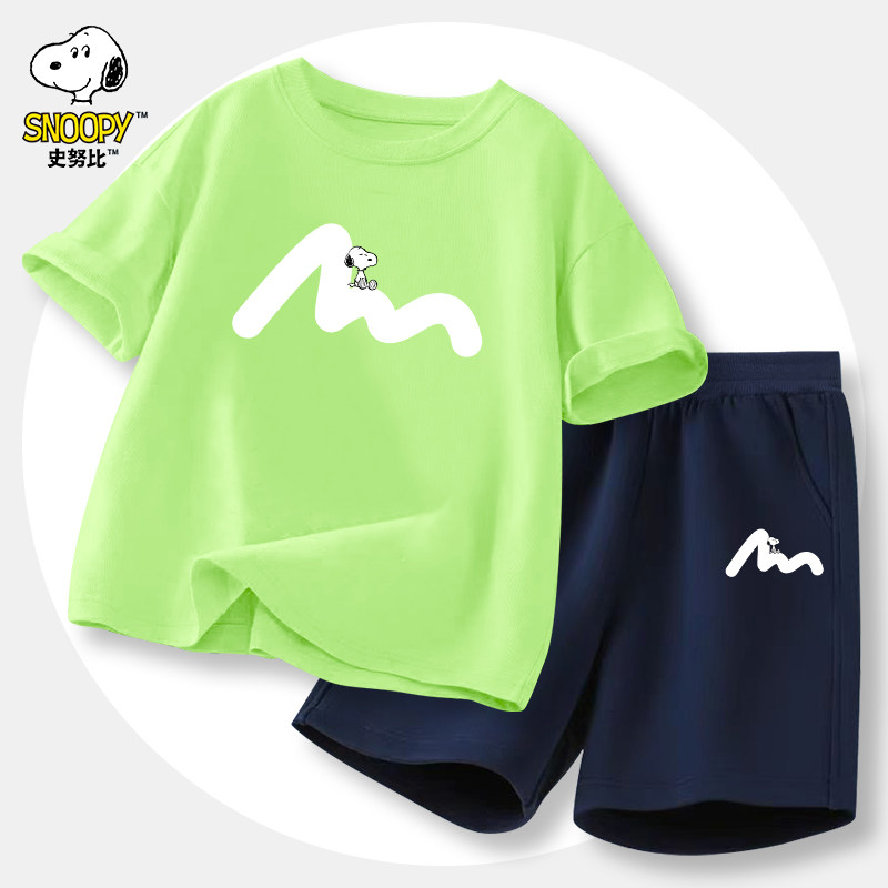 史努比男童短袖t恤套装2025夏季新款纯棉帅气男孩夏装儿童上衣潮