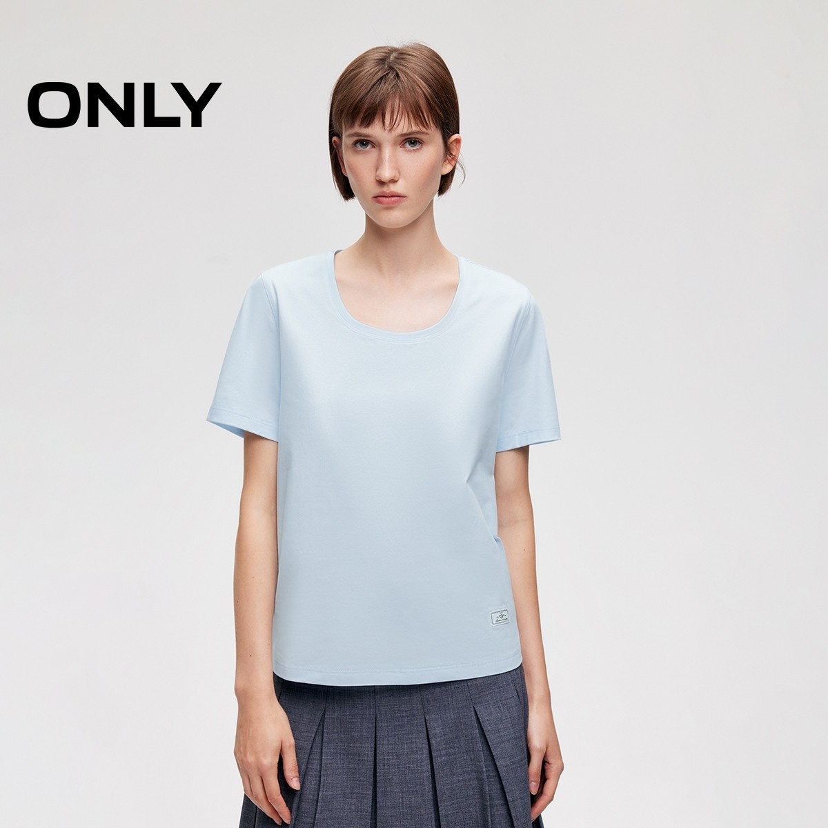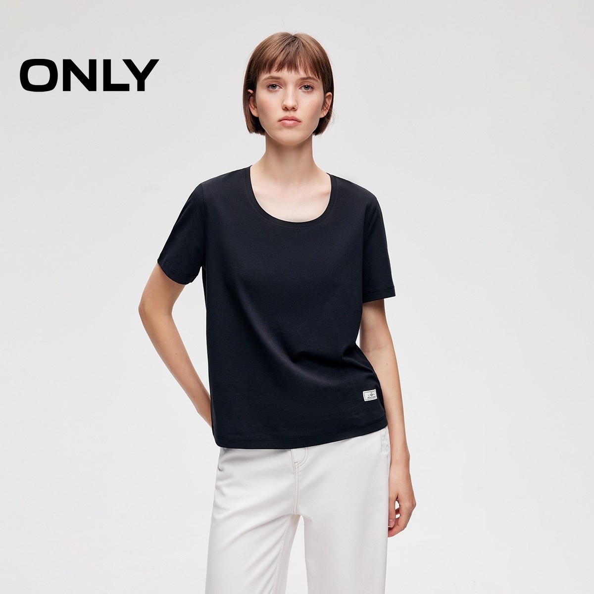 ONLY2026春季新款合体正肩简约纯色直筒圆领短袖T恤女|126101003