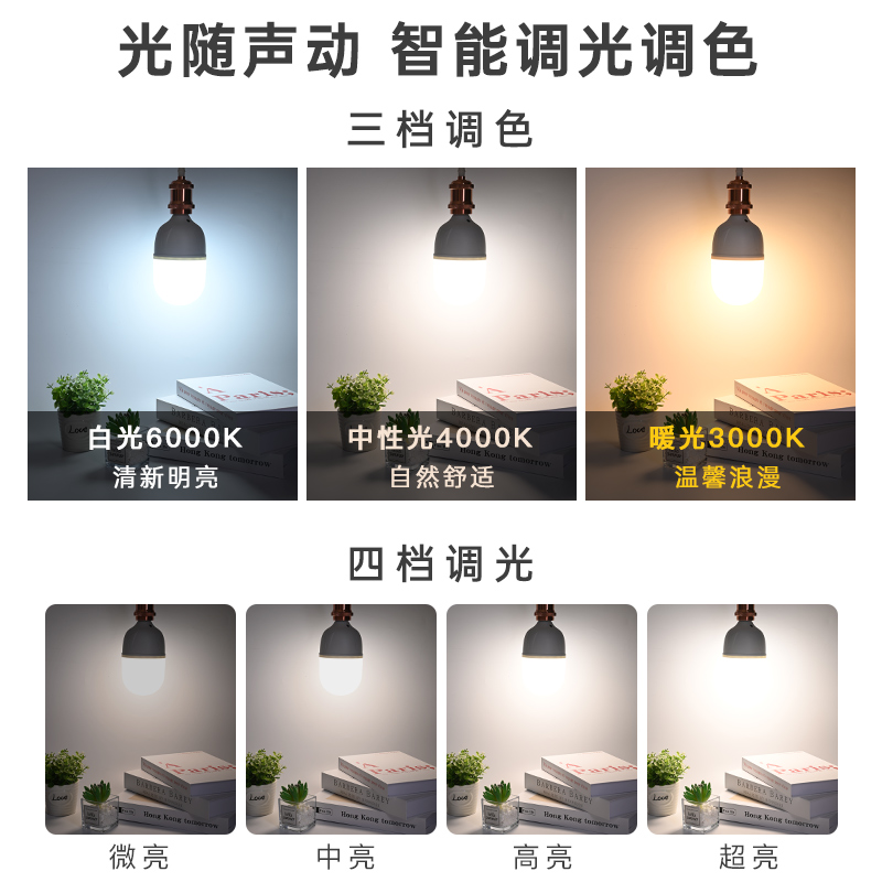 智能灯泡LED可调光调色节能灯E27超亮语音控制球泡护眼声控三色灯