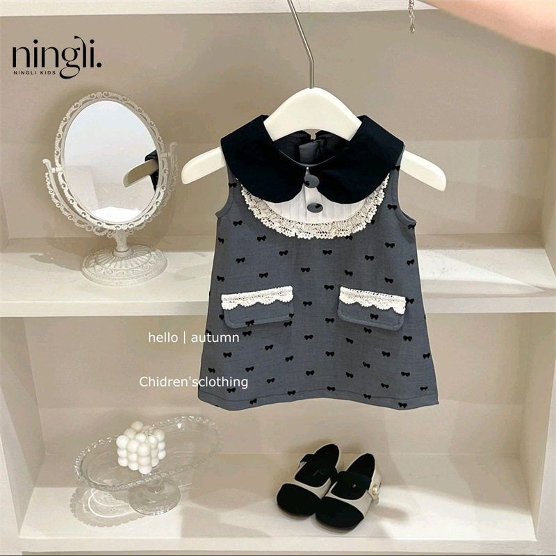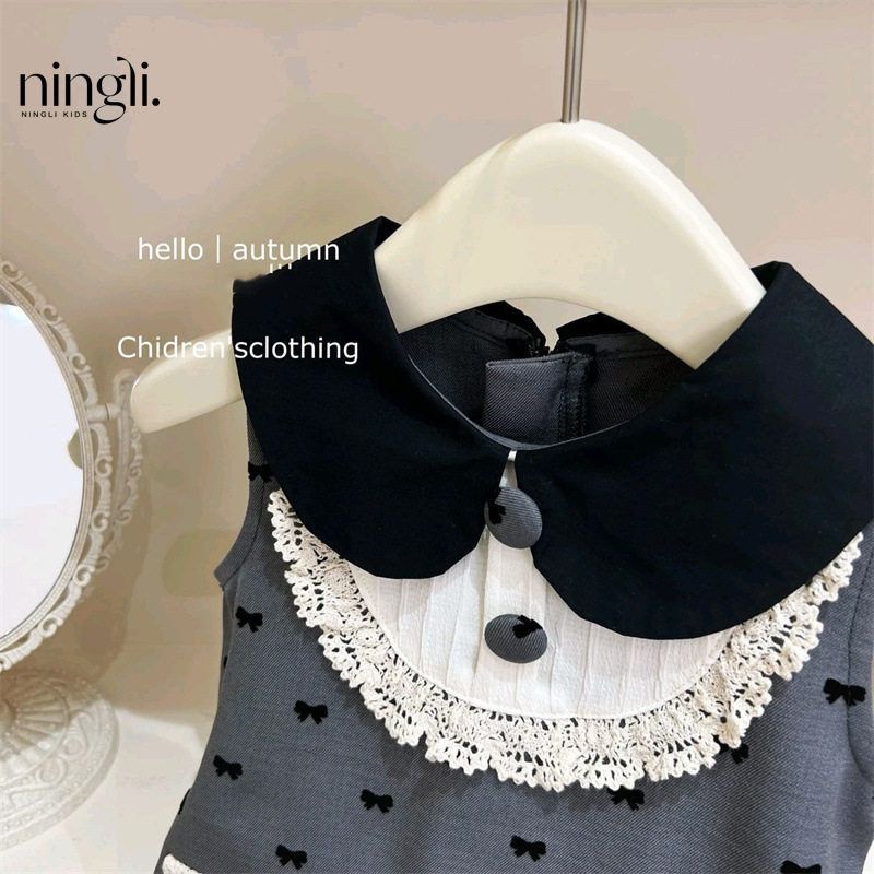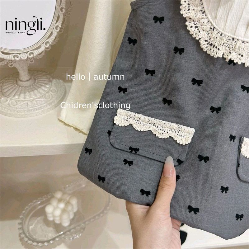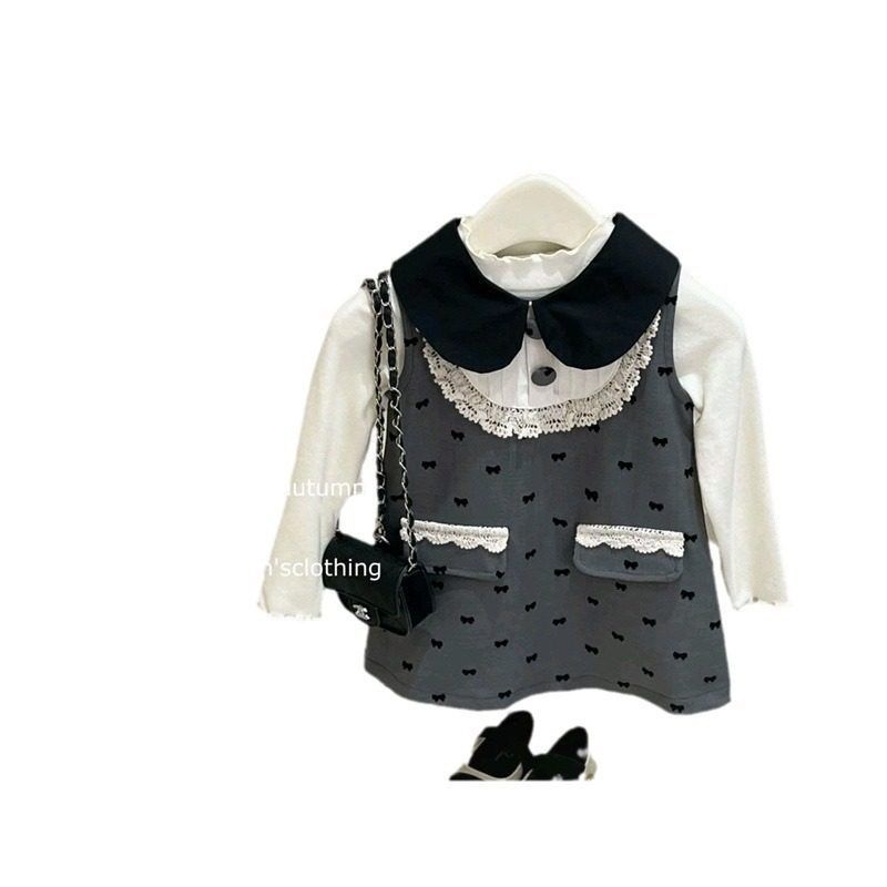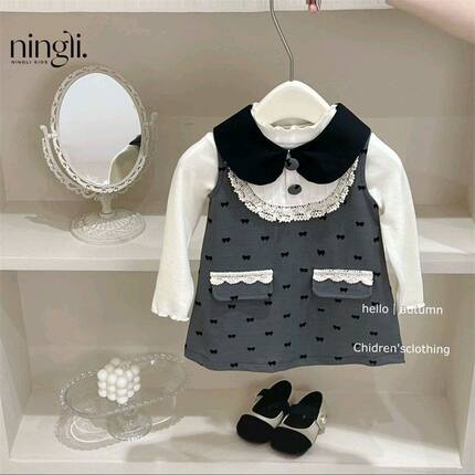 柠里女童秋季小香风连衣裙套装秋装儿童韩版周岁公主裙背心裙套装