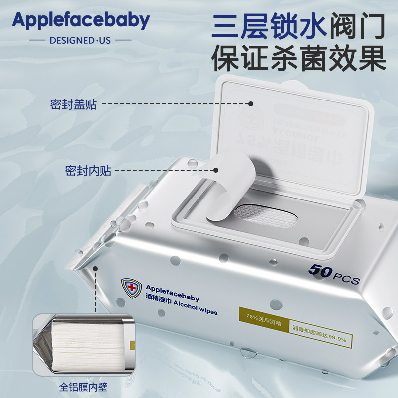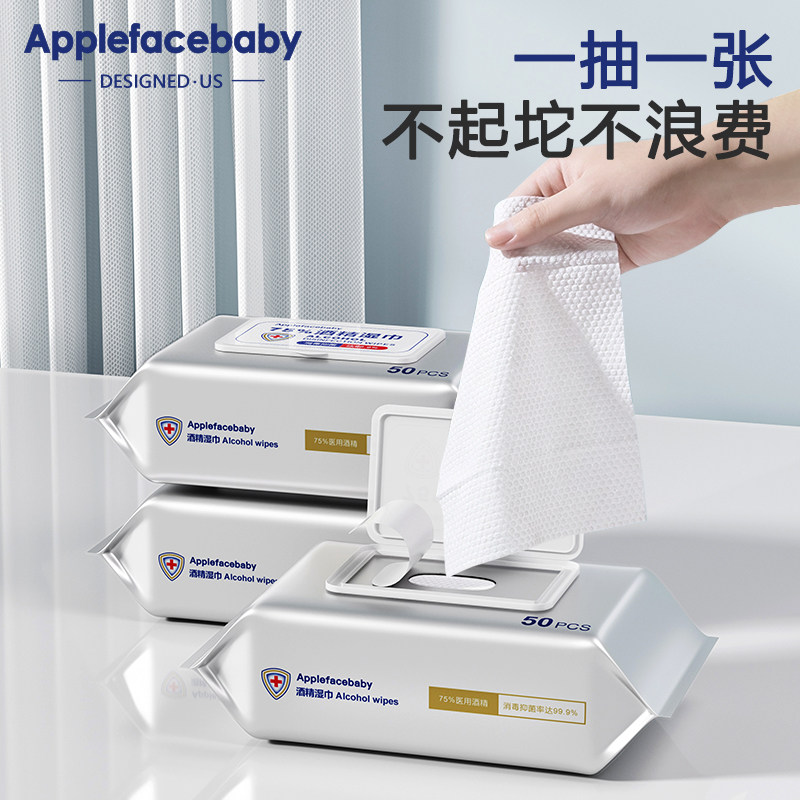 酒精湿巾75%儿童学生酒精消毒专用湿巾纸家用擦手大包装50抽*6包