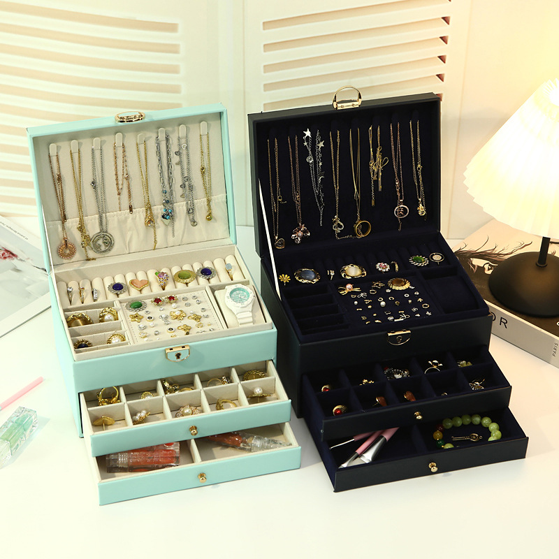首饰收纳盒高档精致耳环耳钉项链戒指黄金手饰品盒子大容量珠宝箱