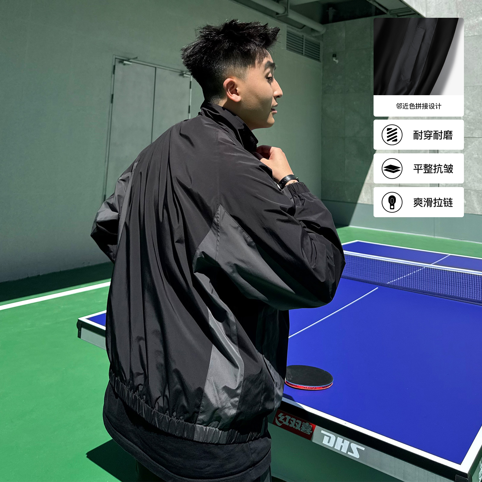 SANBAI 叁佰【先锋男孩】黑色拼色运动外套男士立领美式休闲夹克