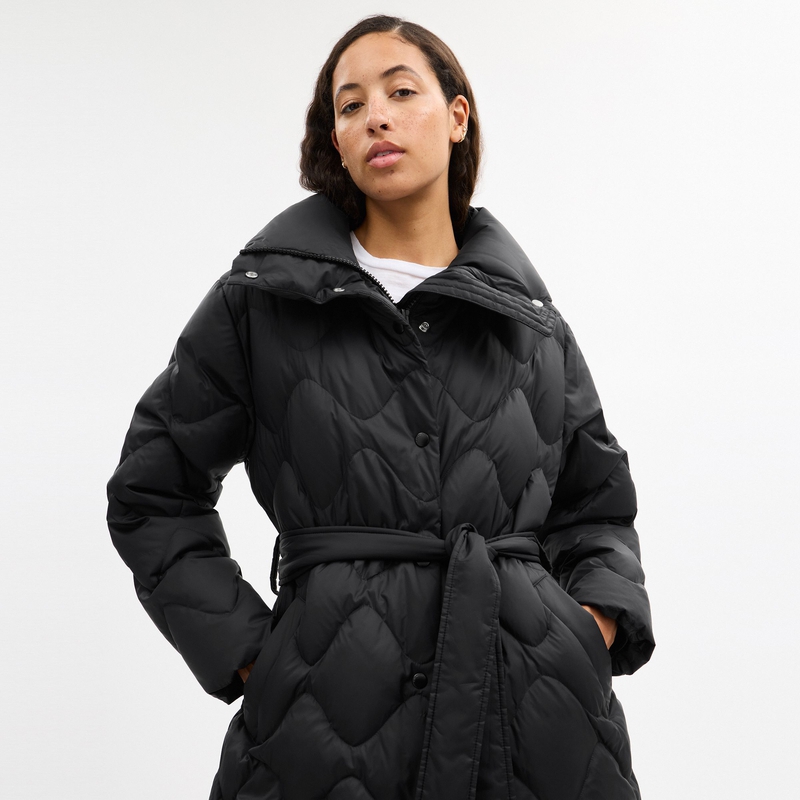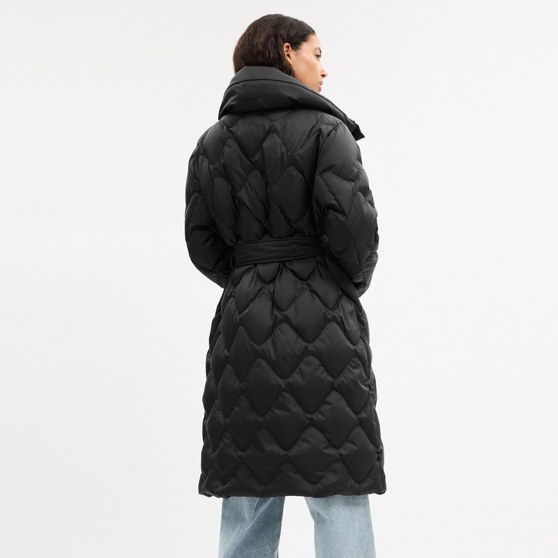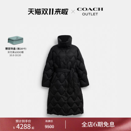 【新品】COACH/蔻驰奥莱女士黑色绗缝含腰带长款羽绒大衣羽绒服