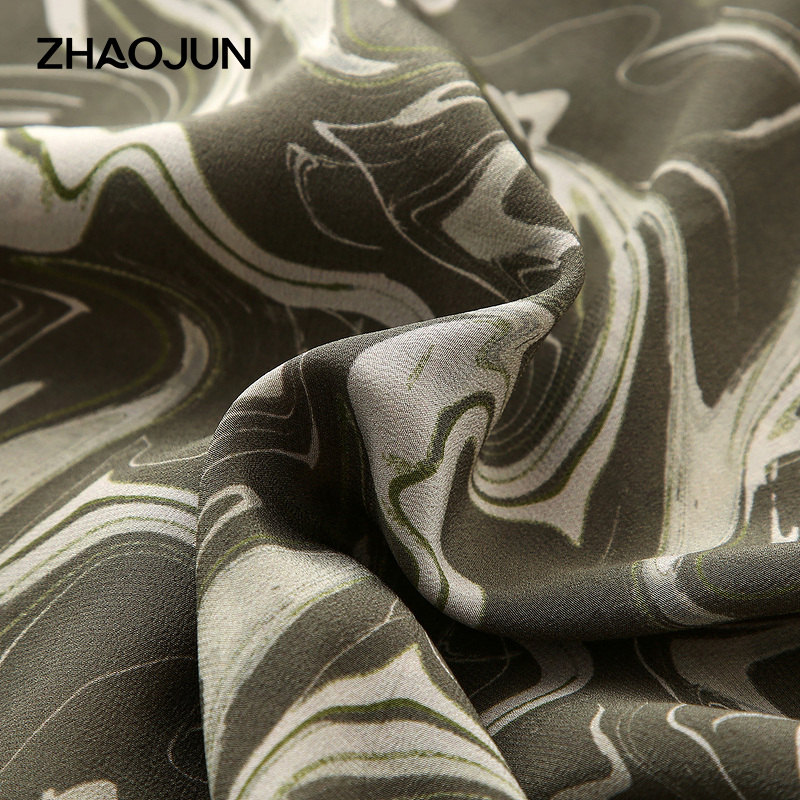 兆君桑蚕丝水波纹印花短袖上衣