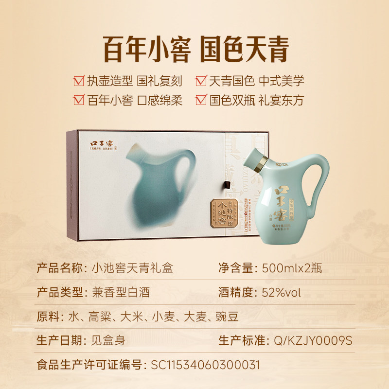 臻选口子窖小池窖特酿52度500ML*2瓶国色天青版礼盒白酒送礼