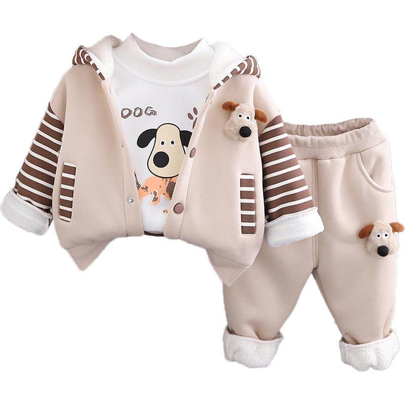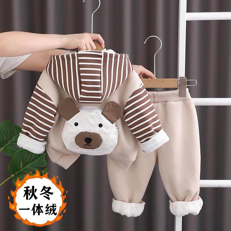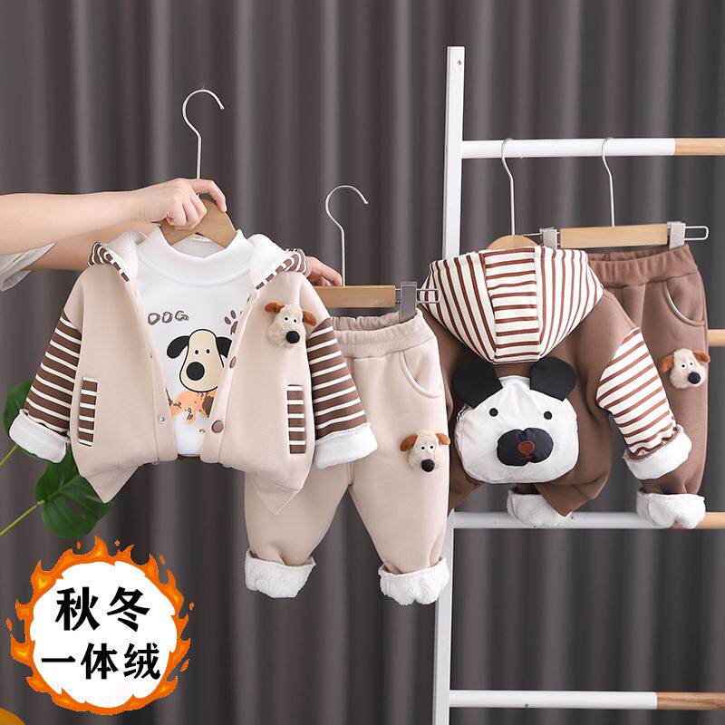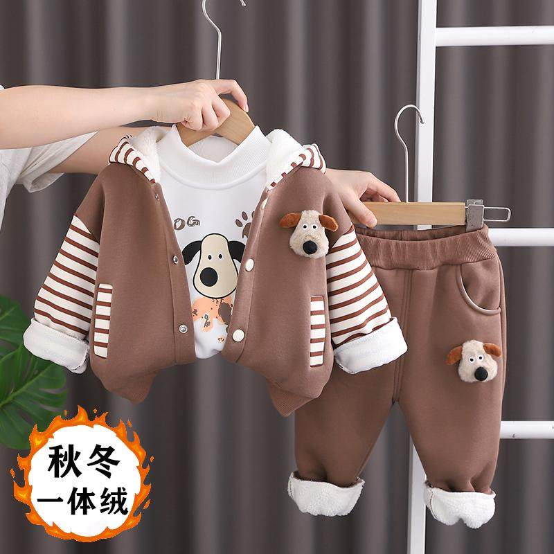 男童加绒套装宝宝秋冬季一体绒三件套婴儿童洋气休闲棒球服冬装潮