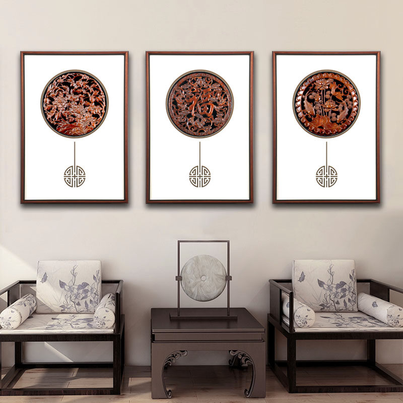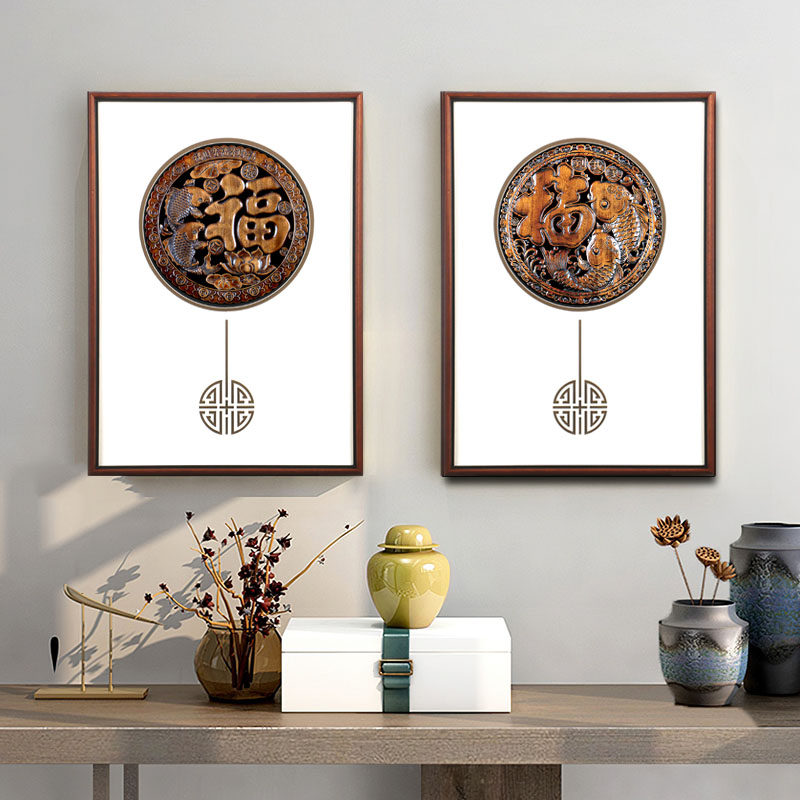 沙发背景墙装饰画新中式东阳木雕挂件禅意餐厅客厅书房办公室禅意
