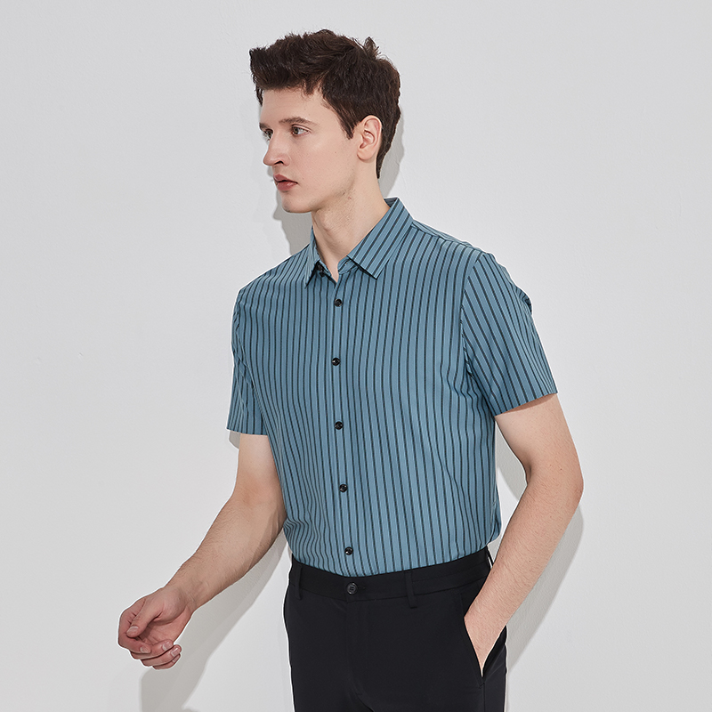 【高弹易打理】DIDIBOY条纹休闲短袖T恤衫易打理商务男士短袖衬衫