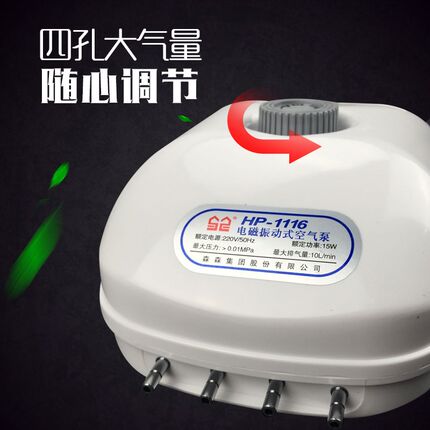 森森氧气泵水族箱增氧泵鱼缸气泵增氧大功率4头15W大型鱼池充氧机