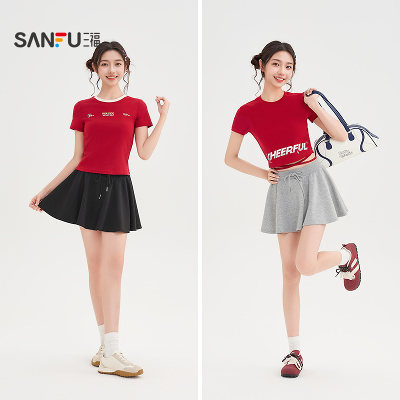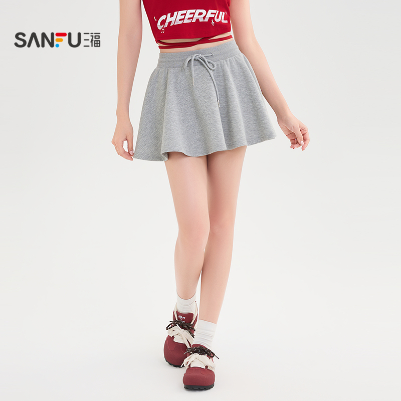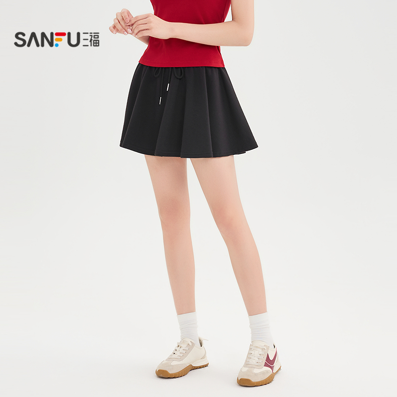 三福短裙2025夏季防走光内衬宽松抽绳运动半身裙女装502246
