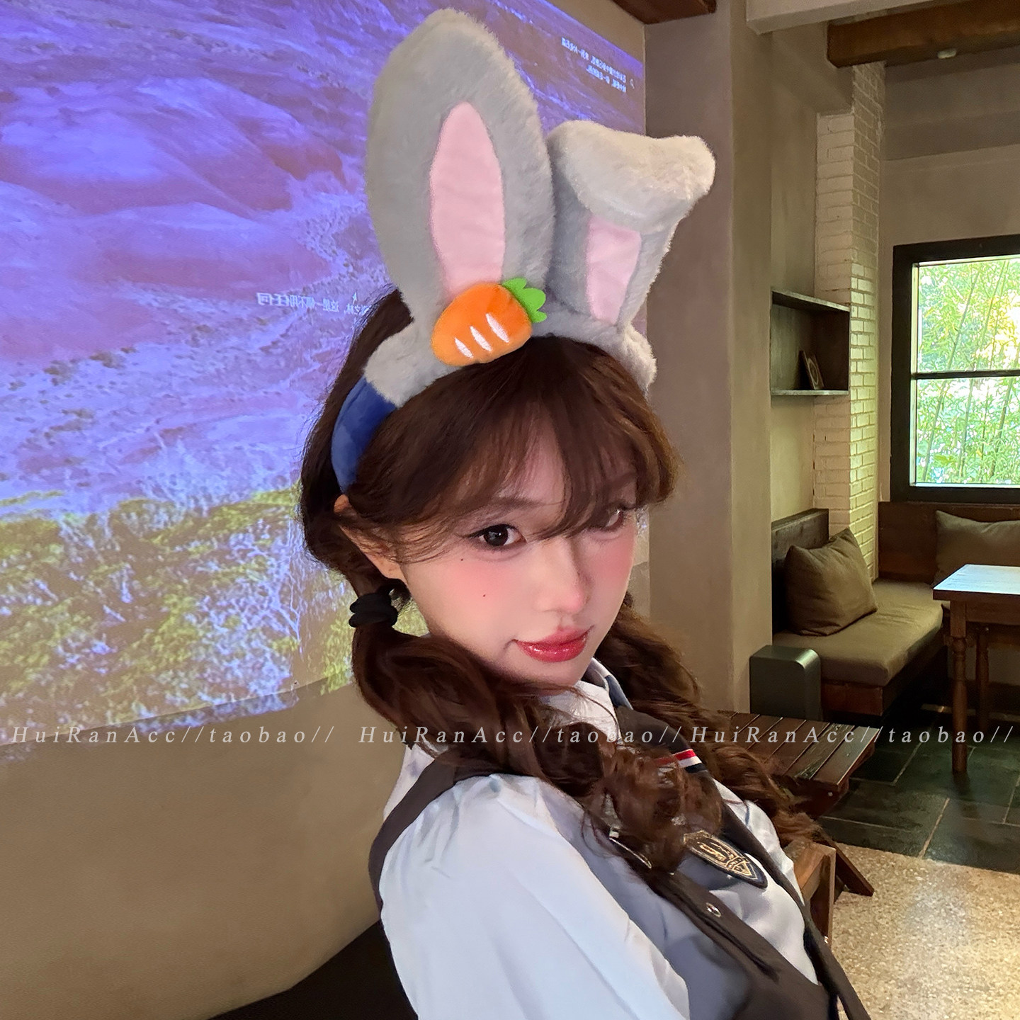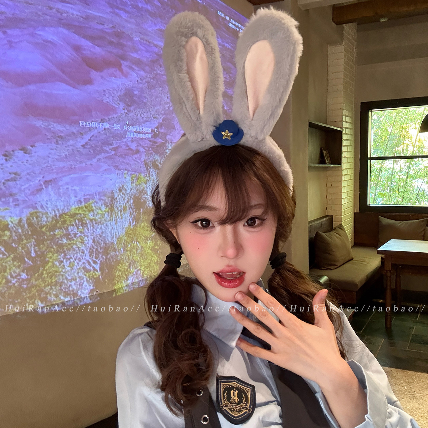 疯狂动物城卡通cos兔子警官朱迪毛绒发箍女迪士尼拍照氛围感发饰