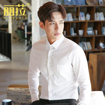 白色衬衫男长袖修身职业工作服正装男士商务工装寸衫结婚伴郎衬衣