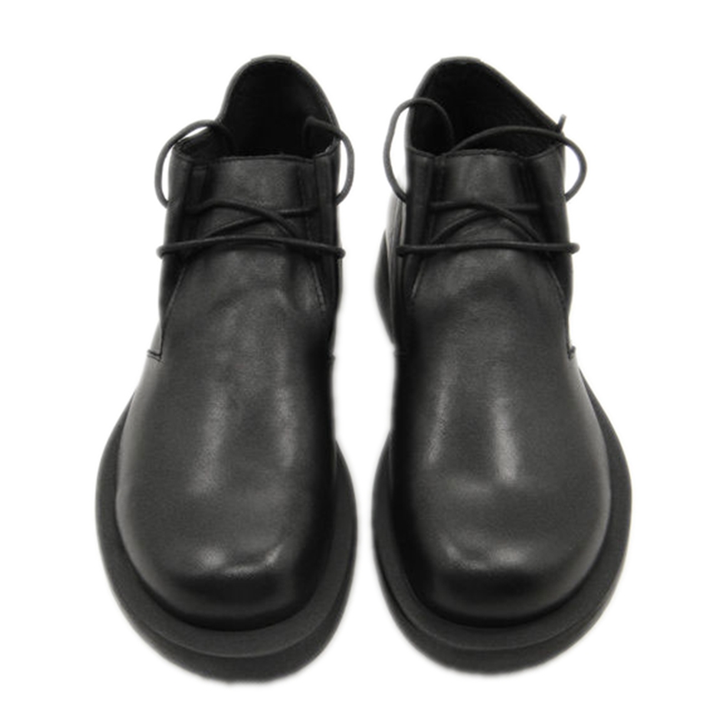 2025冬季原创潮牌头层牛皮大头宽脚高帮男鞋厚底休闲大码男靴短靴