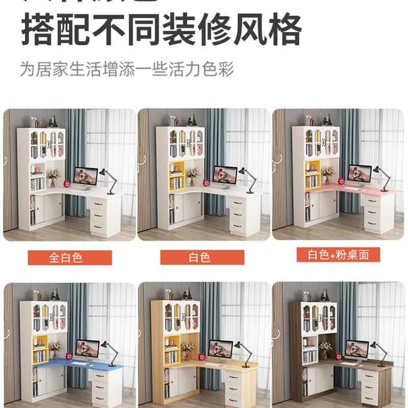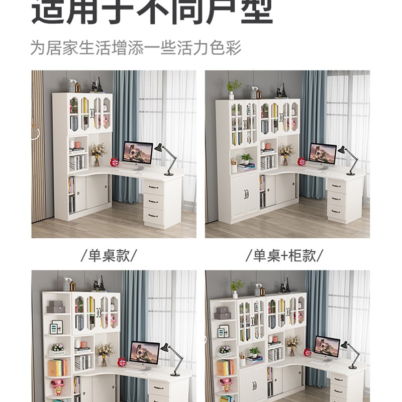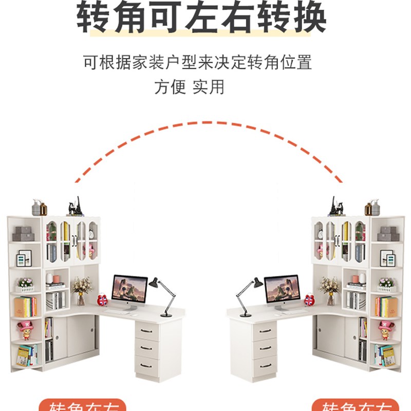 实木书桌书架一体简约家用学生写字桌子I带书柜组合转角电脑台式