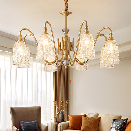 法式轻奢全铜水晶吊灯客厅灯卧室灯现代欧式复古主卧美式餐厅灯具