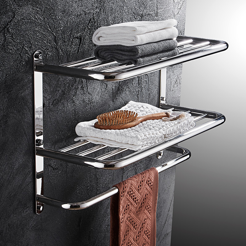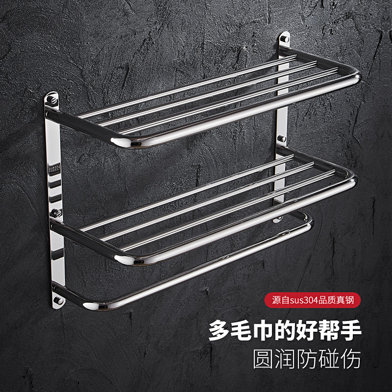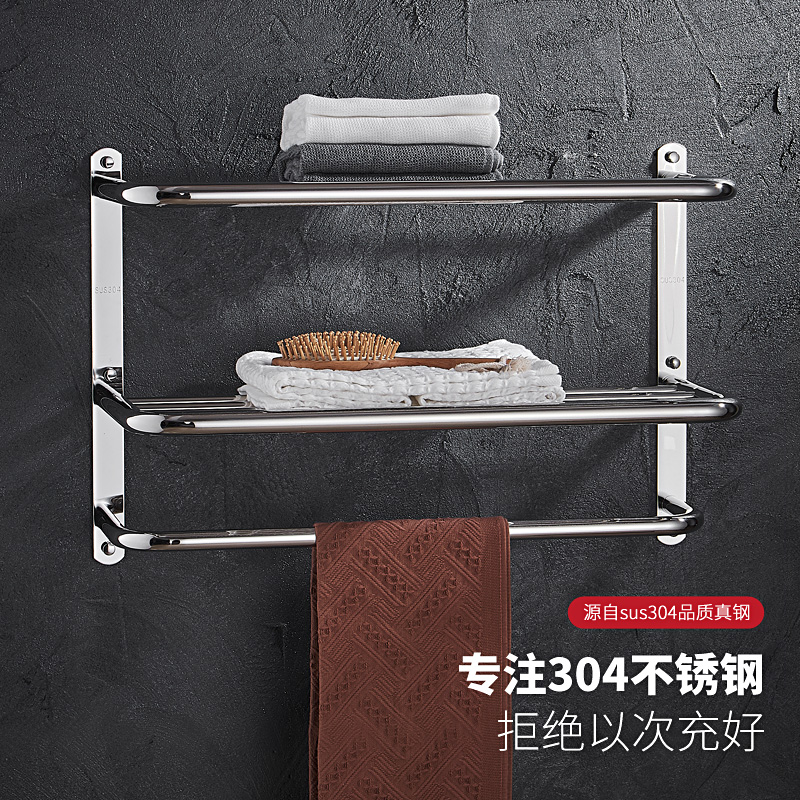 毛巾架免打孔卫生间厕所置物架浴室挂件三层浴巾架不锈钢304双层