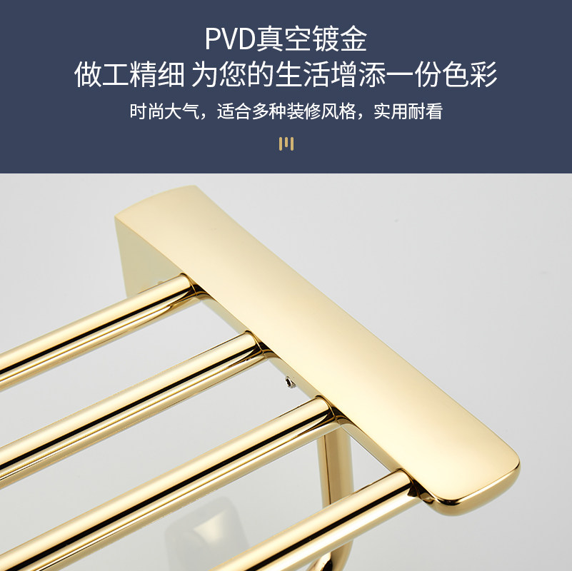 卫生间金色轻奢风不锈钢浴巾架厕所挂件套装浴室毛巾架五金置物架