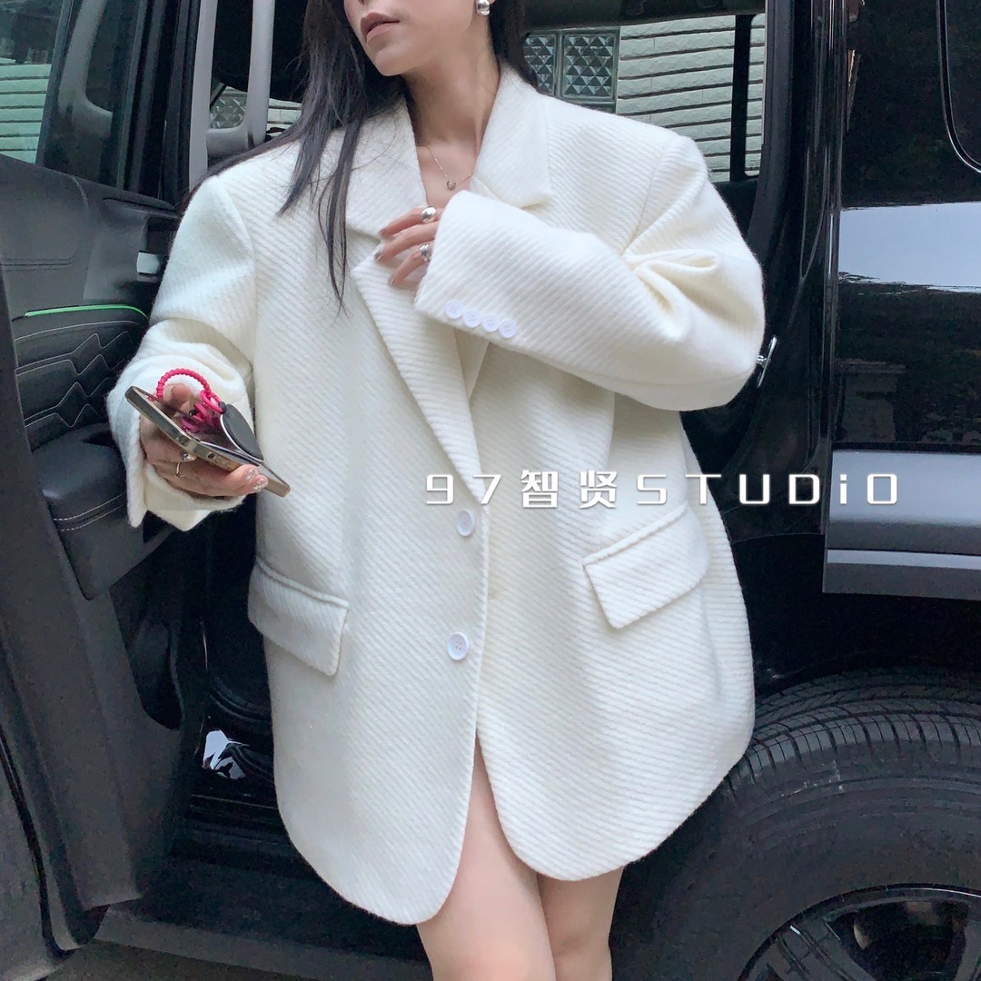 韩系流行女神范秋冬气质高级感显瘦百搭款毛呢大衣加厚西装外套女