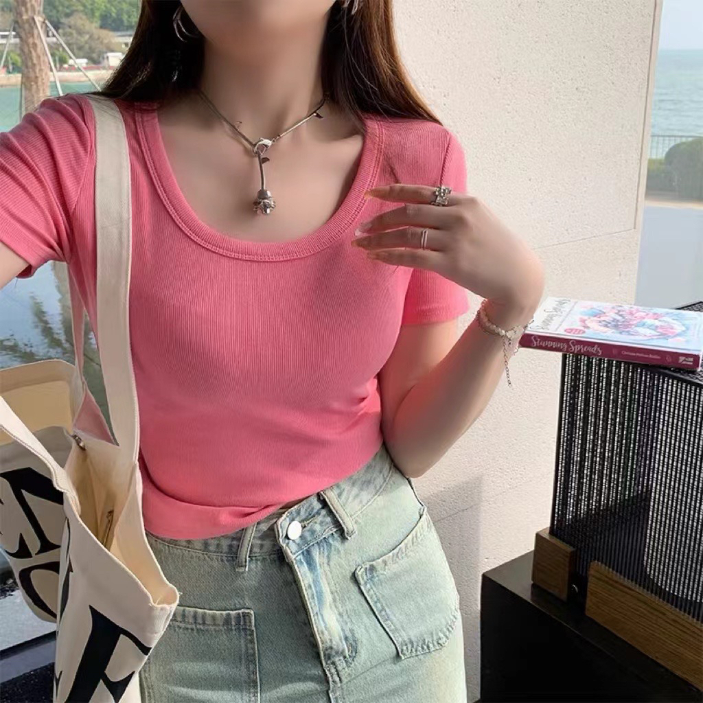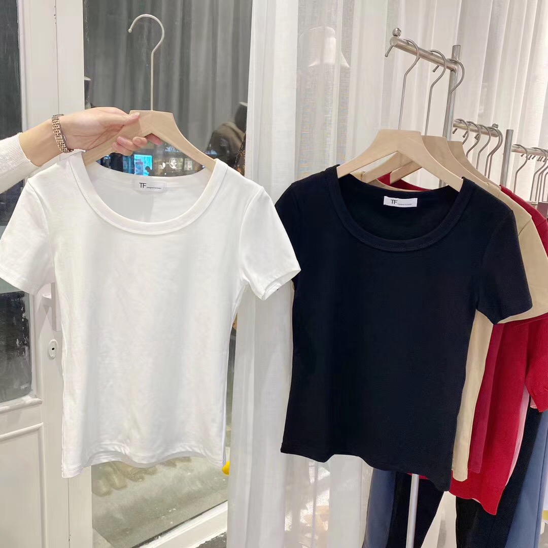 2025夏季新款基础款短袖T恤女修身U领纯棉显瘦体恤时尚打底衫上衣