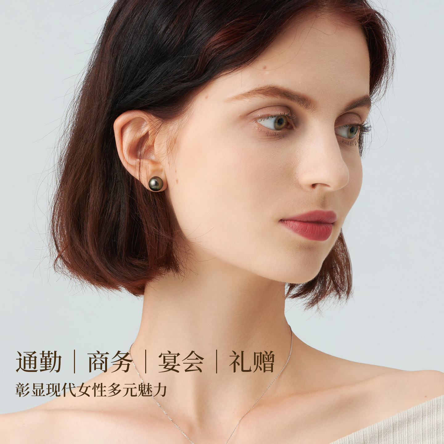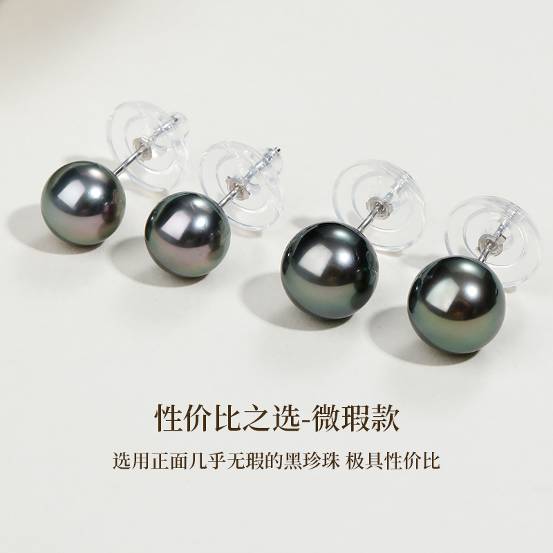 GiO珠宝大溪地海水黑珍珠耳钉女18K金耳环孔雀绿素钉耳饰高级感