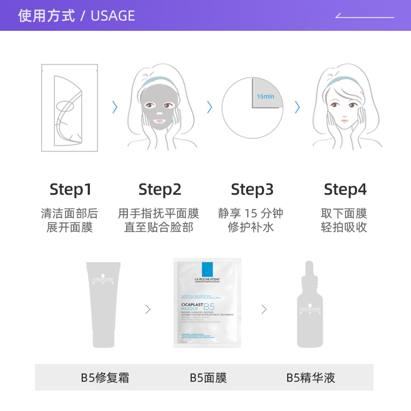 【自营】理肤泉B5面膜白膜20片补水保湿多效淡化舒缓修护