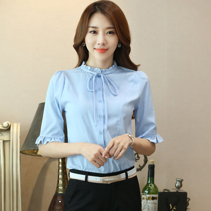 韩范小清新学院风系带雪纺衬衫