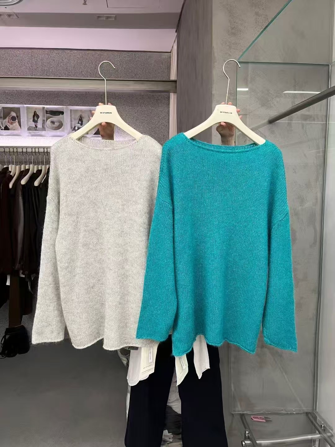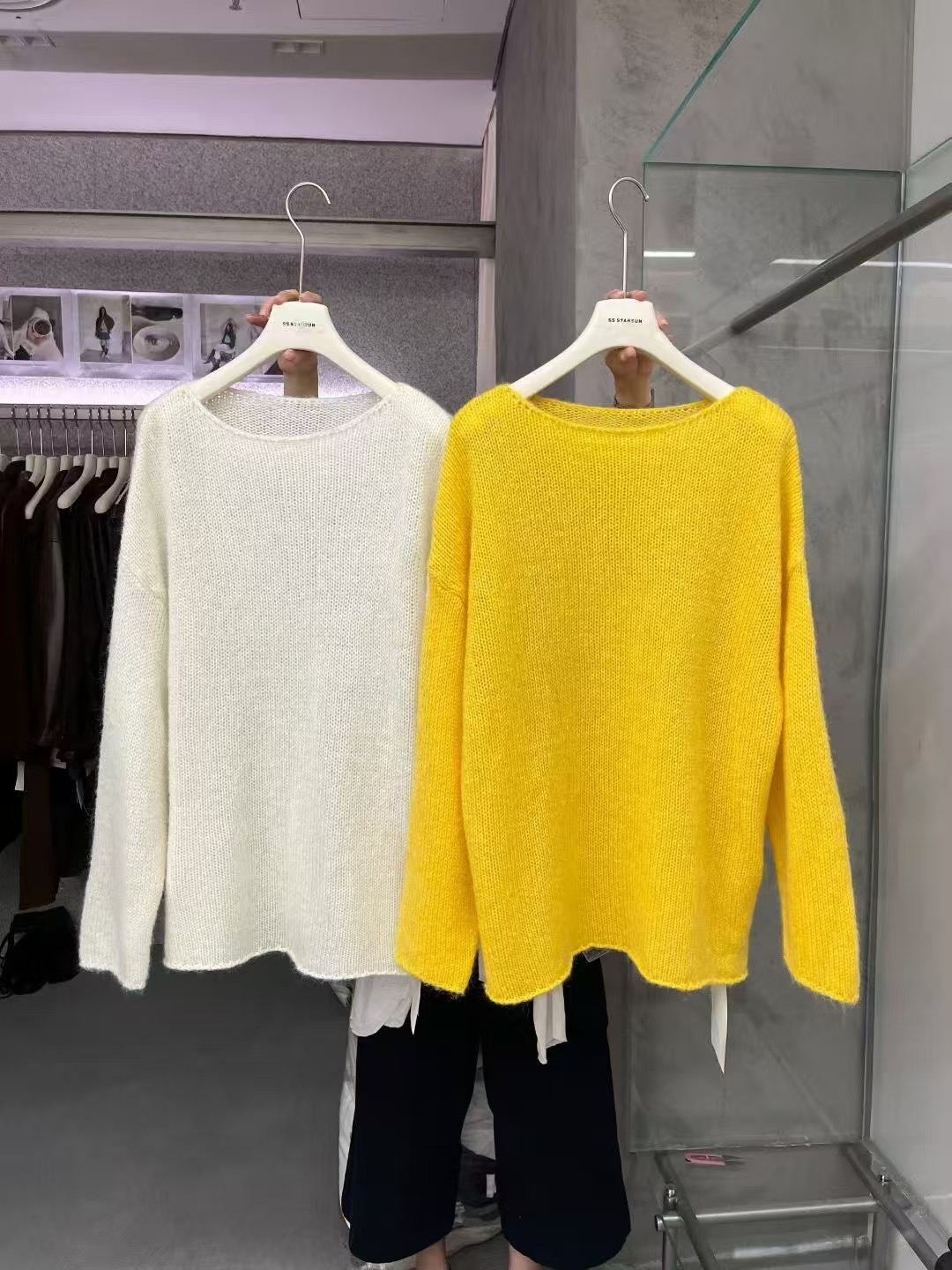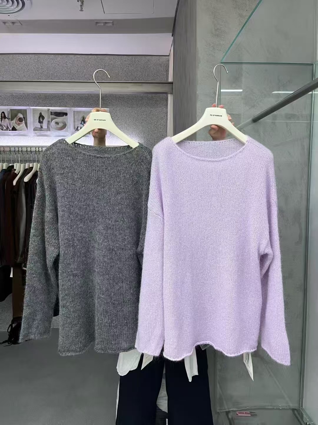 ss starsun新款套头圆领马海毛羊毛长袖针织毛衣女超仙薄毛衣上衣